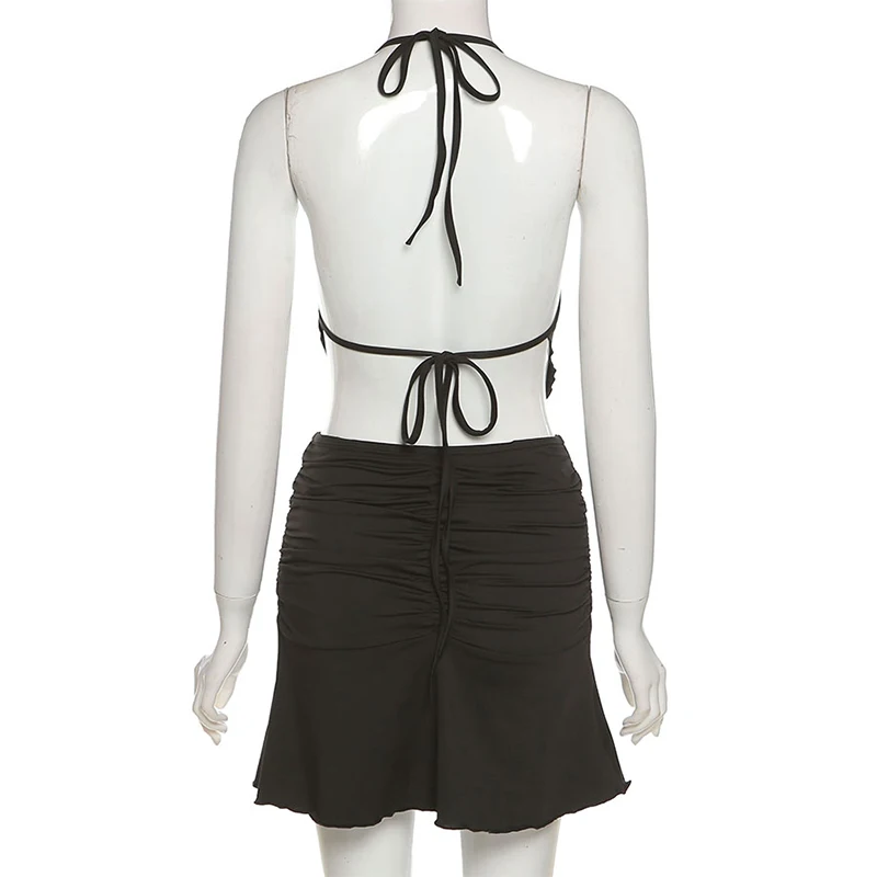 Женский комплект из двух предметов: жилет с рюшами без рукавов и плиссированная мини-юбка с высокой талией