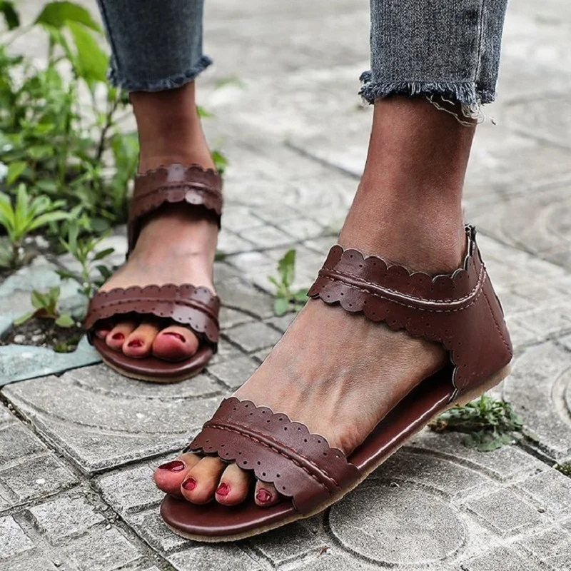 Сандалии женские из натуральной кожи, плоская подошва, модная обувь...