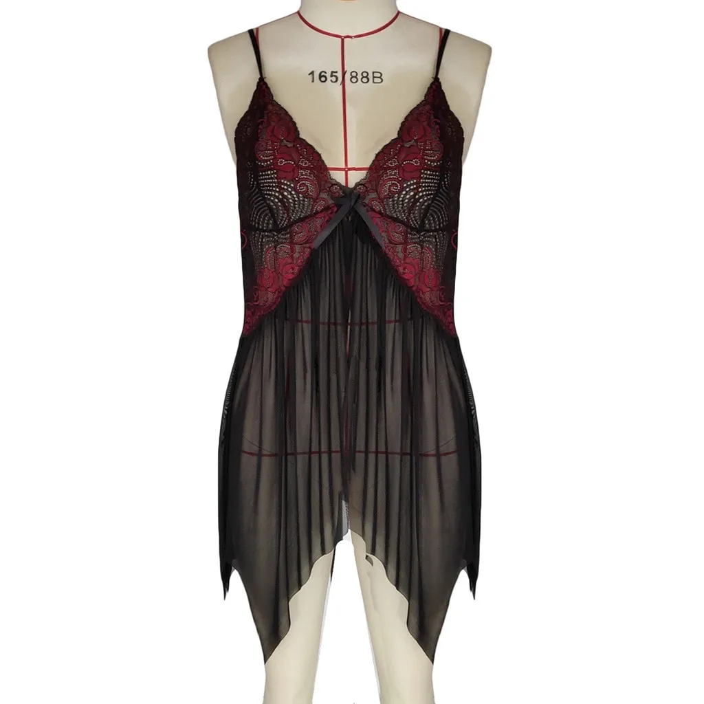 Сексуальное женское нижнее белье размера плюс с цветочным кружевом, ночная сорочка с v-образным вырезом, сексуальное ночное белье на бретелях, сорочка Mujer, нижнее белье, ночные рубашки