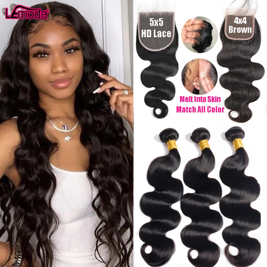 Lace Size4x4 5x5 6x6 HD Lace Closure with bundles weave extension