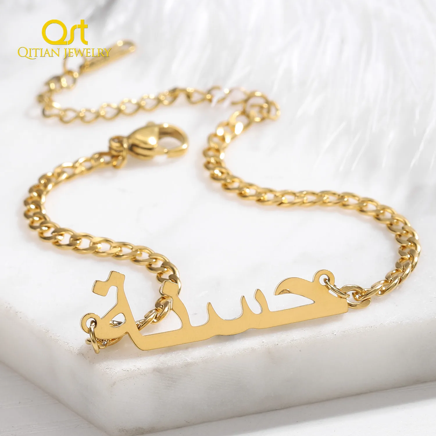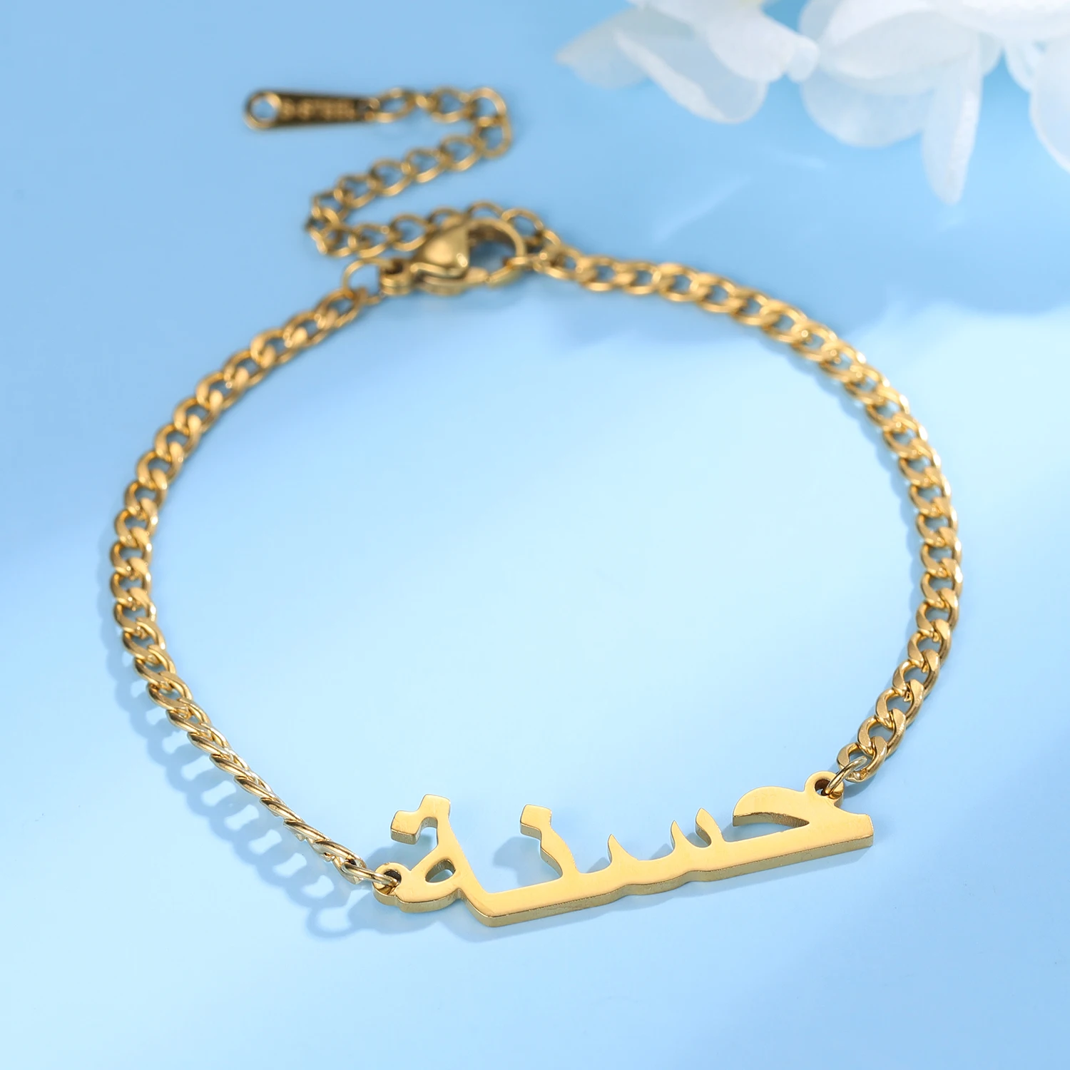 Персонализированные арабский имя браслет Нержавеющаясталь кубинская цепь браслет индивидуальная именная табличка с названием браслет для пары Шарм подарок