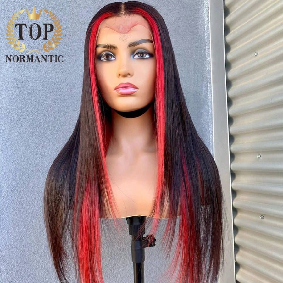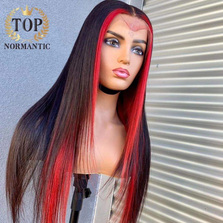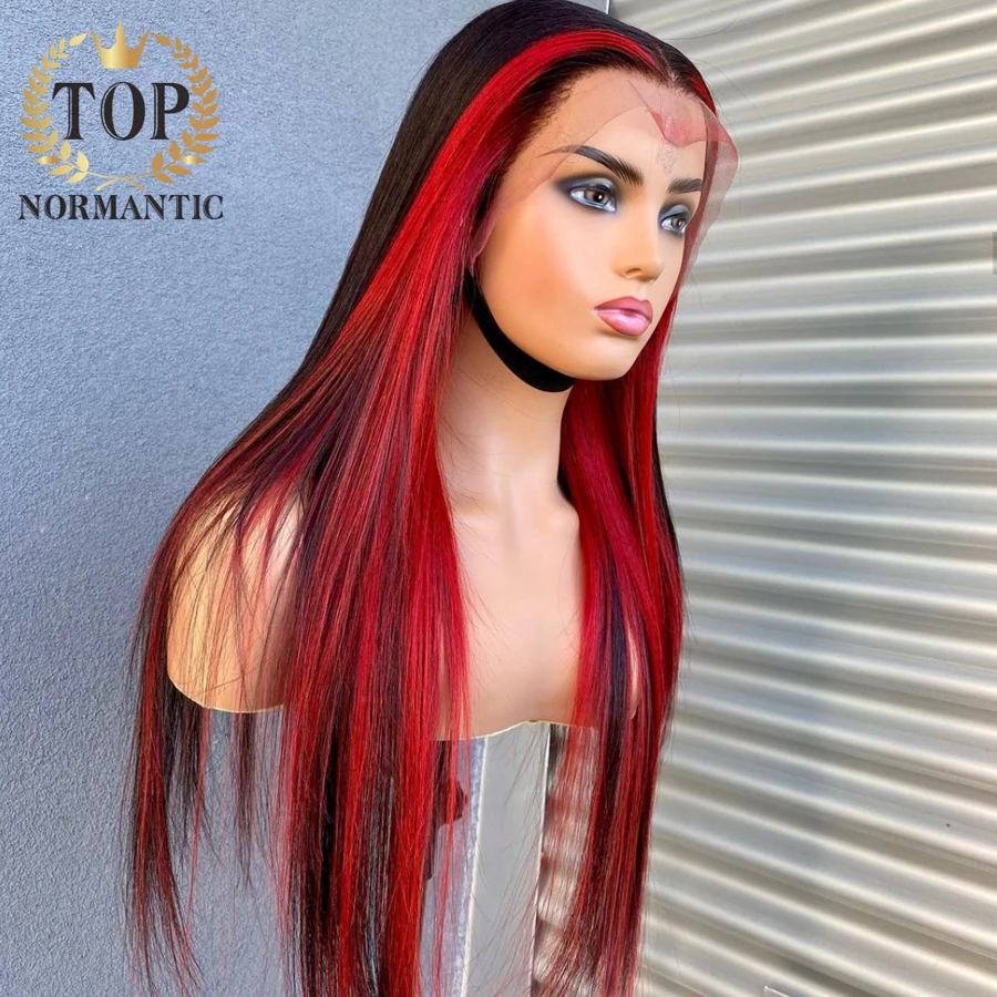 Topnormantic хайлайтер красный цвет шелковистый прямой парик 13x 6 кружевной спереди Remy индийские человеческие волосы парики для женщин с детскими волосами