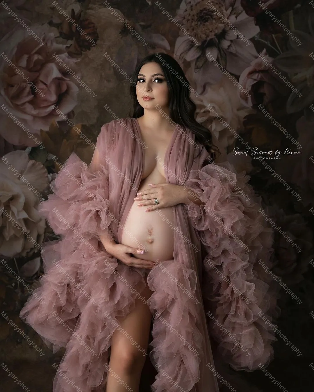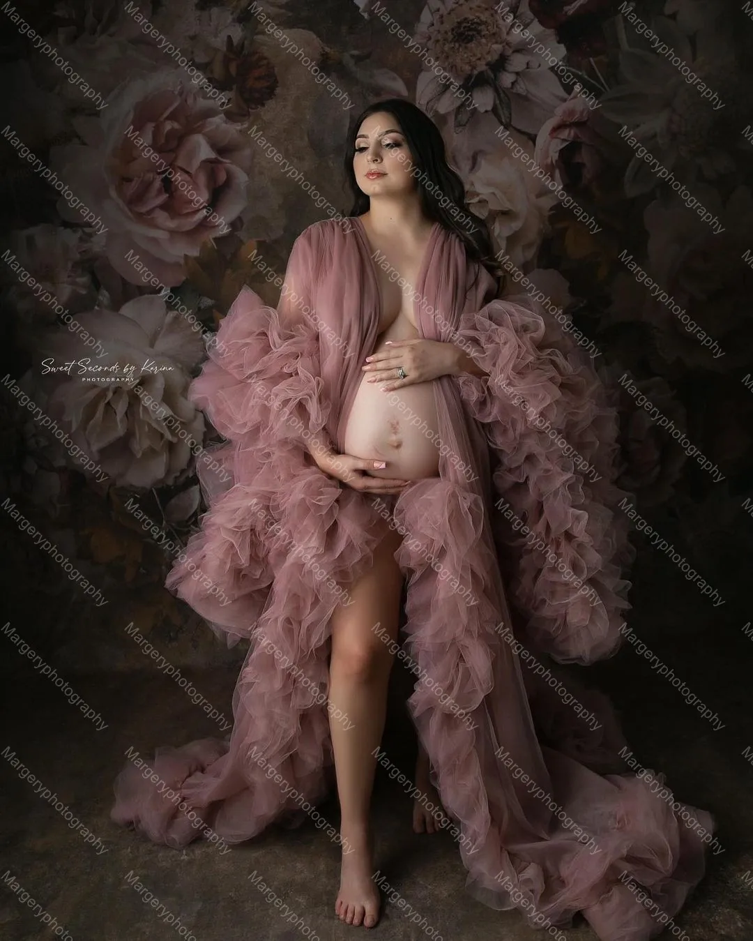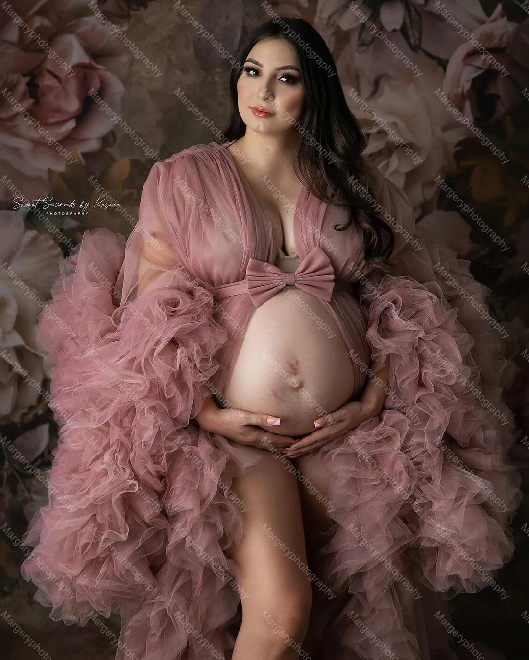 Пышное розовое Тюлевое платье для беременных женщин, длинные халаты для фотографии, изготовленные на заказ, пышное Сетчатое платье для беременных, свадебные платья
