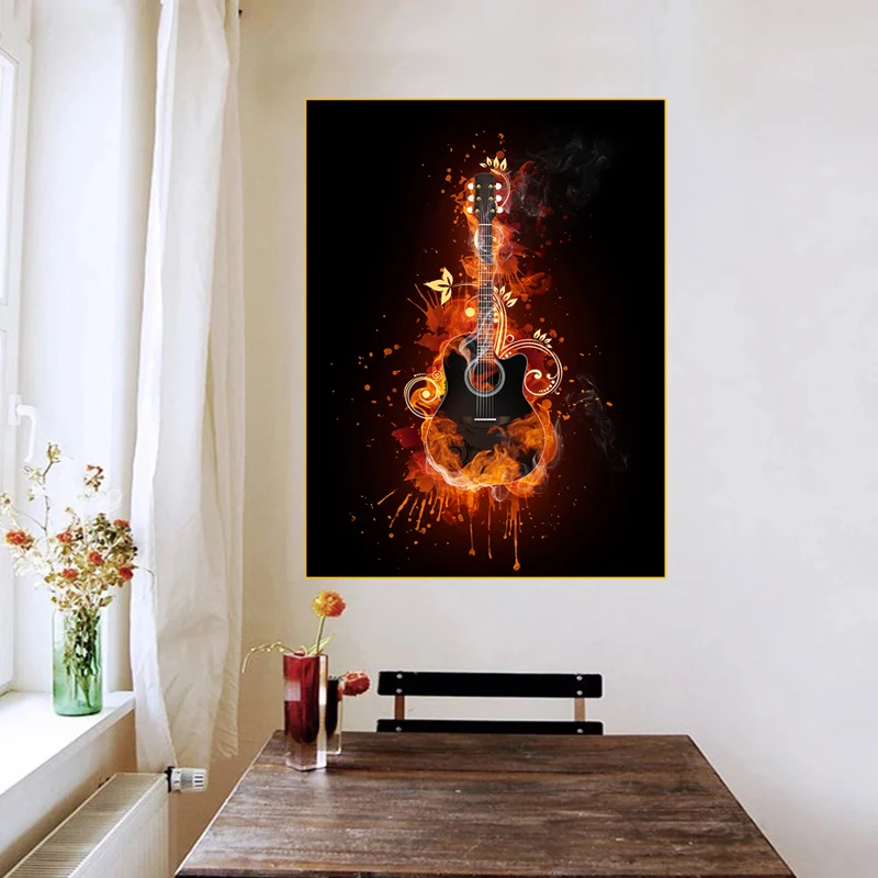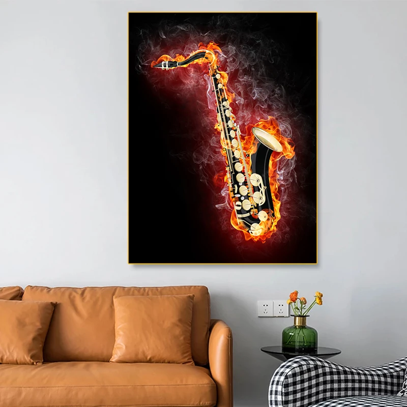 Горящая гитара саксофон холст картины творческий Музыкальный инструмент Плакаты печать настенные картины Современный Спальня украшение дома