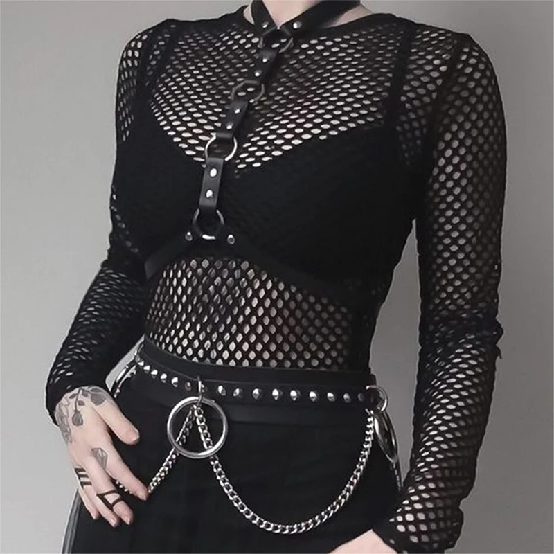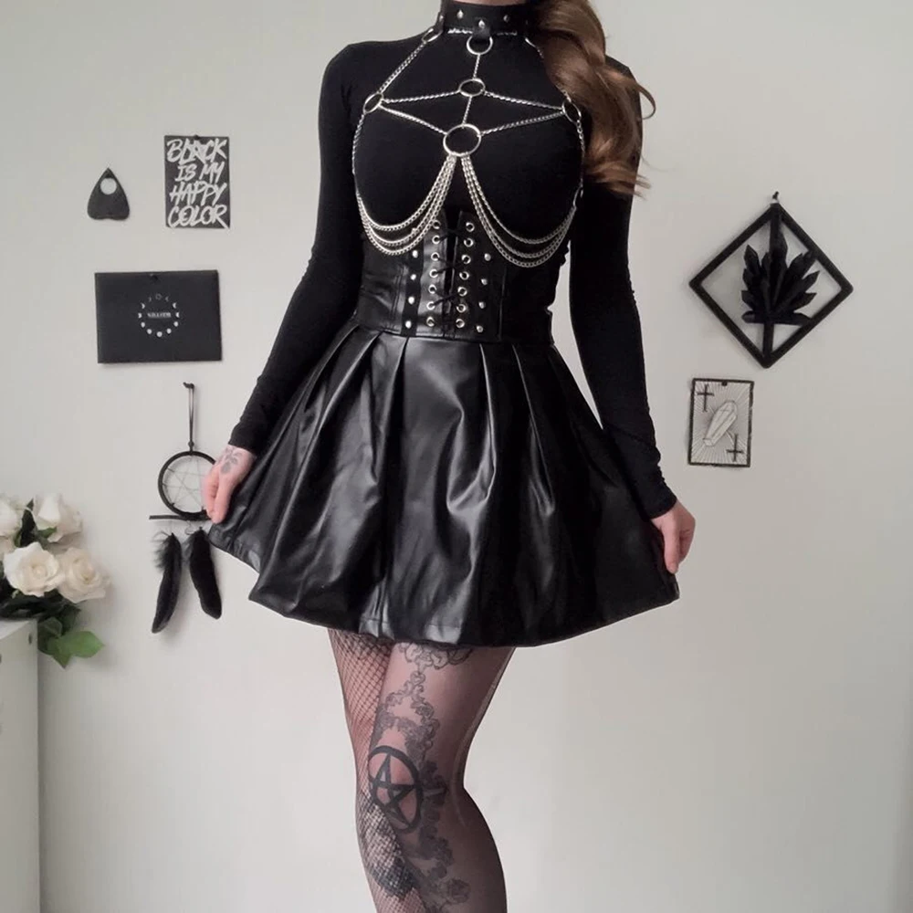 Женский кожаный ремень Goth Top, бондажный бюстгальтер с цепочкой, эротический пояс с цепочкой на талию