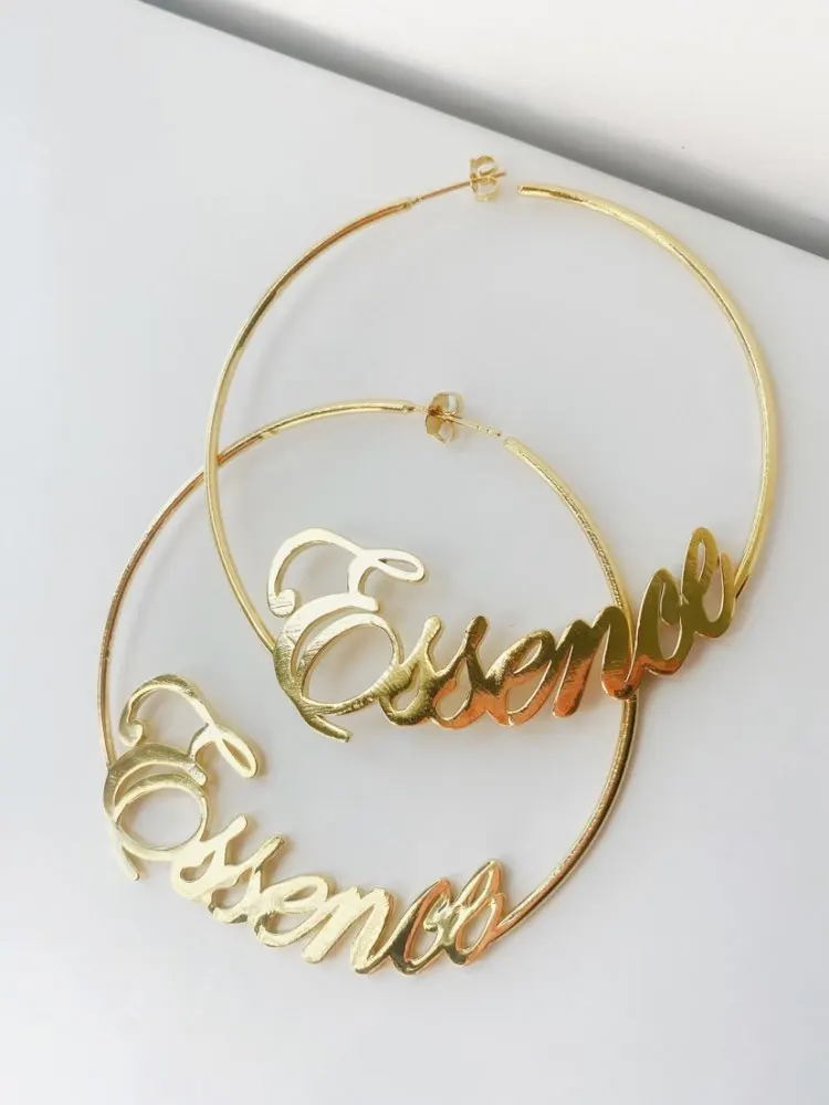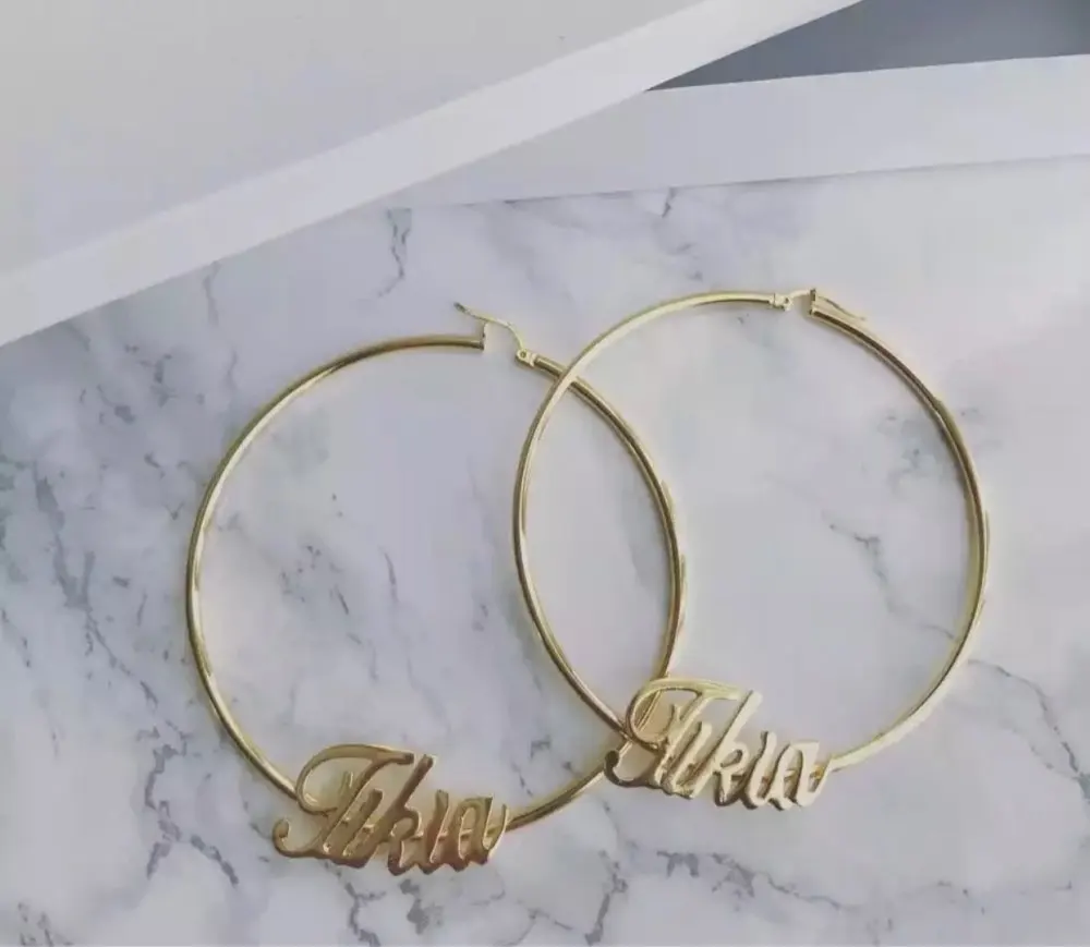 Персонализированные Имя обруч серьги, 18k, позолота, изготовленная ...