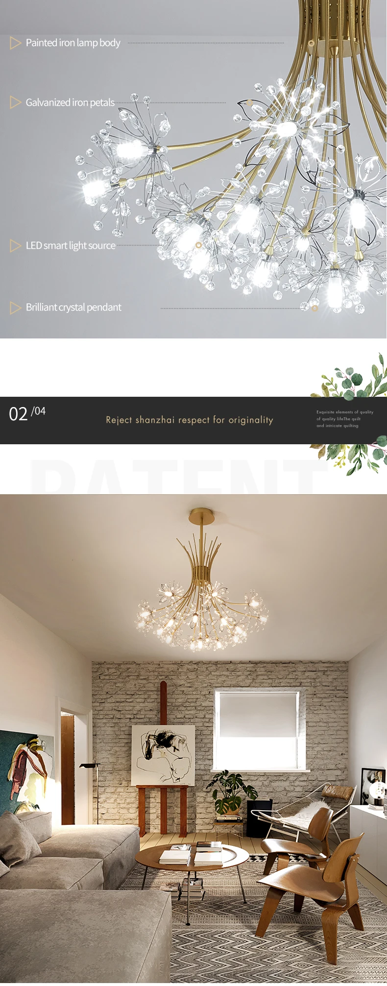 Светодиодная люстра в скандинавском стиле, декоративная Подвесная лампа в виде одуванчика, ветки дерева, светлячков, для гостиной, спальни
