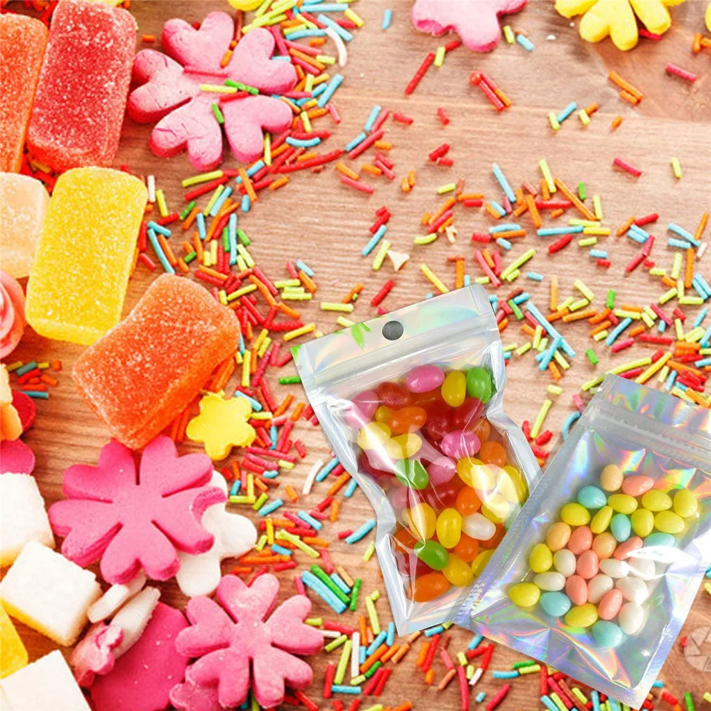 100 шт., пакет из алюминиевой фольги Пакеты Со струнной застежкой многократного использования для хранения орехов, конфет, для печенья, закусок пакетиков на молнии