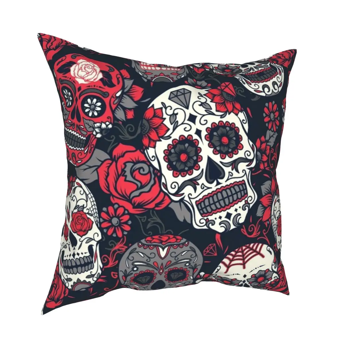 Красная квадратная подушка с изображением сахарного черепа чехол из полиэстера подушки для дивана Мексиканская Подушка 45*45 см наволочка домашний декор