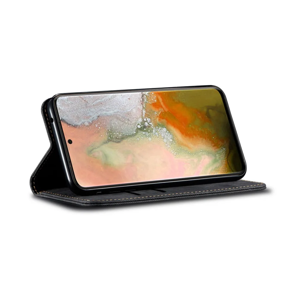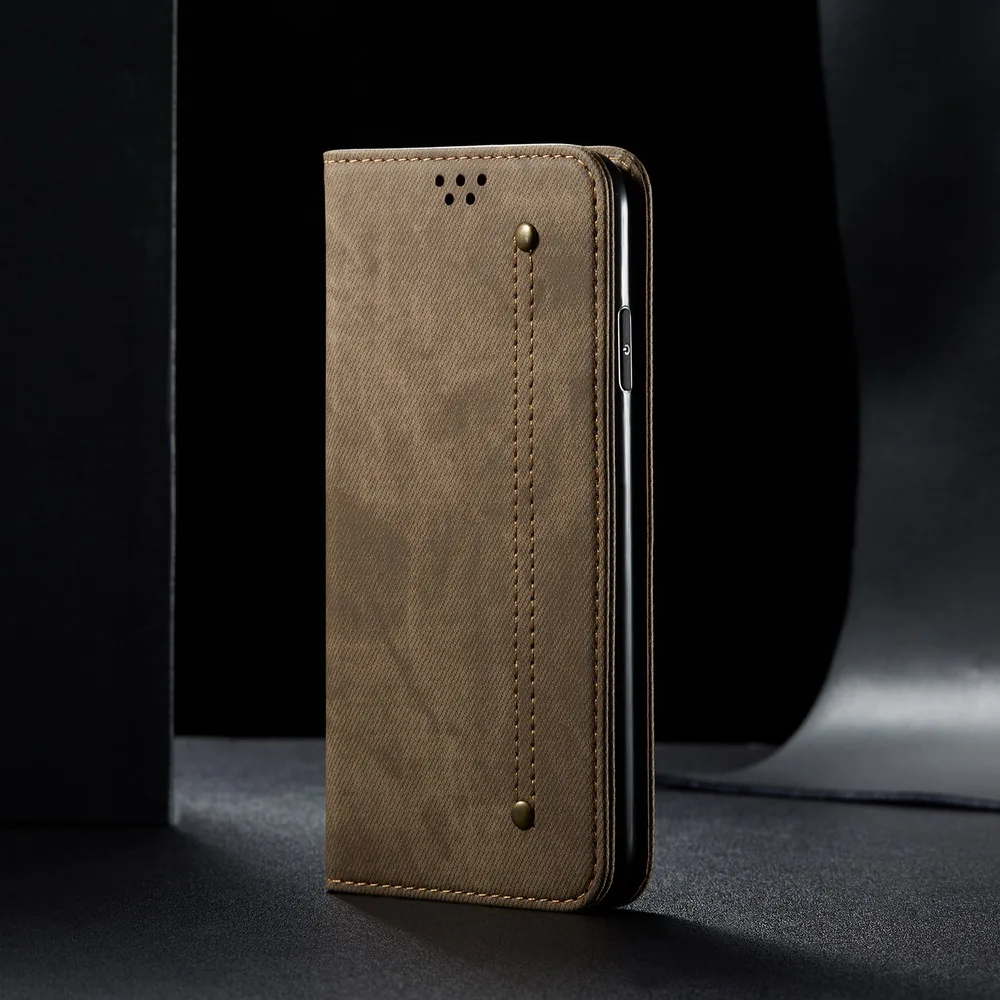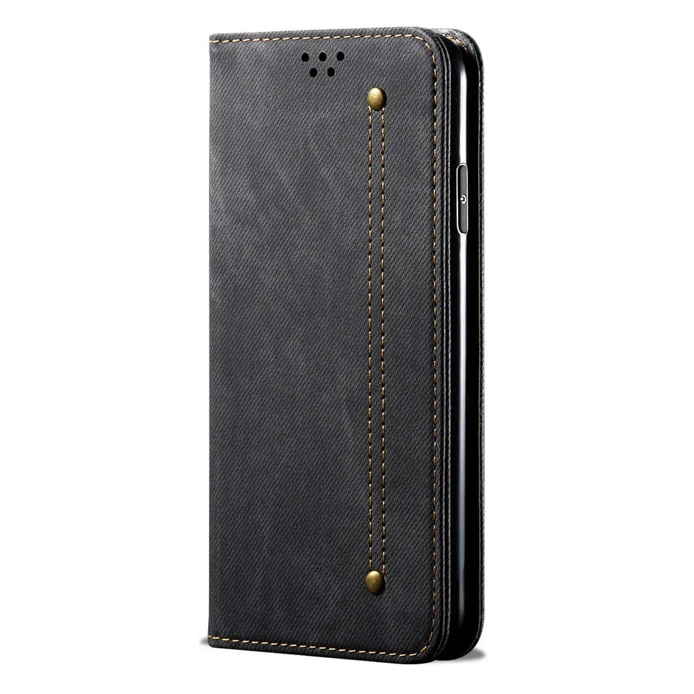ХарактеристикиAutomatic adsorption Denim Mixed PU Leather Flip Wallet Case