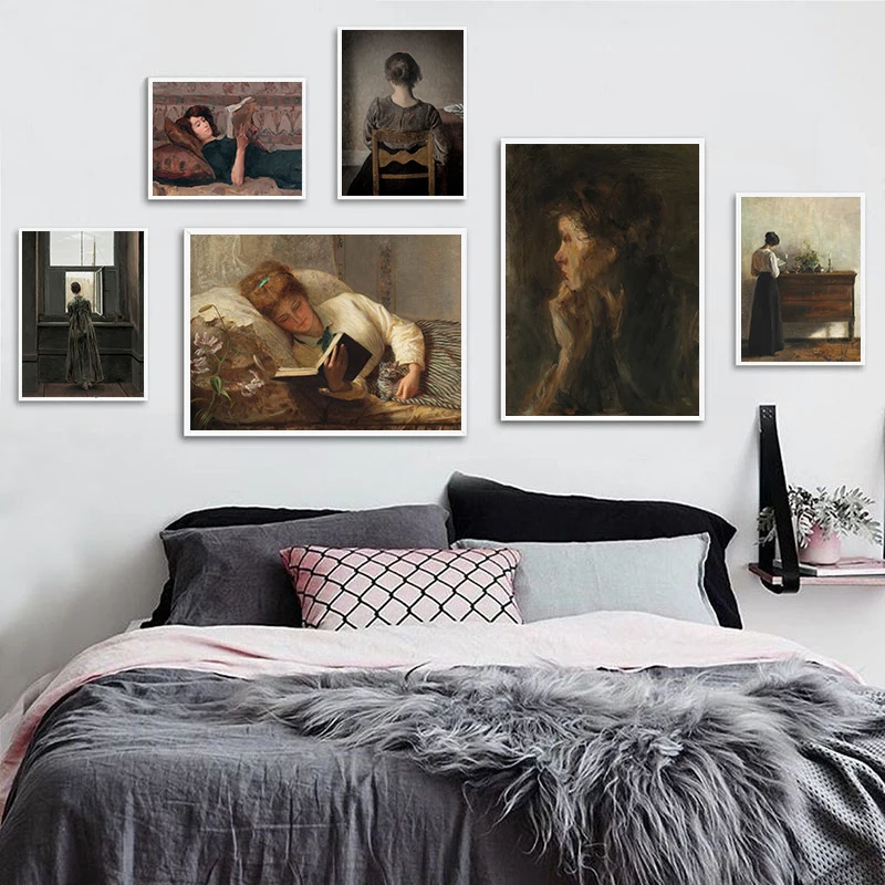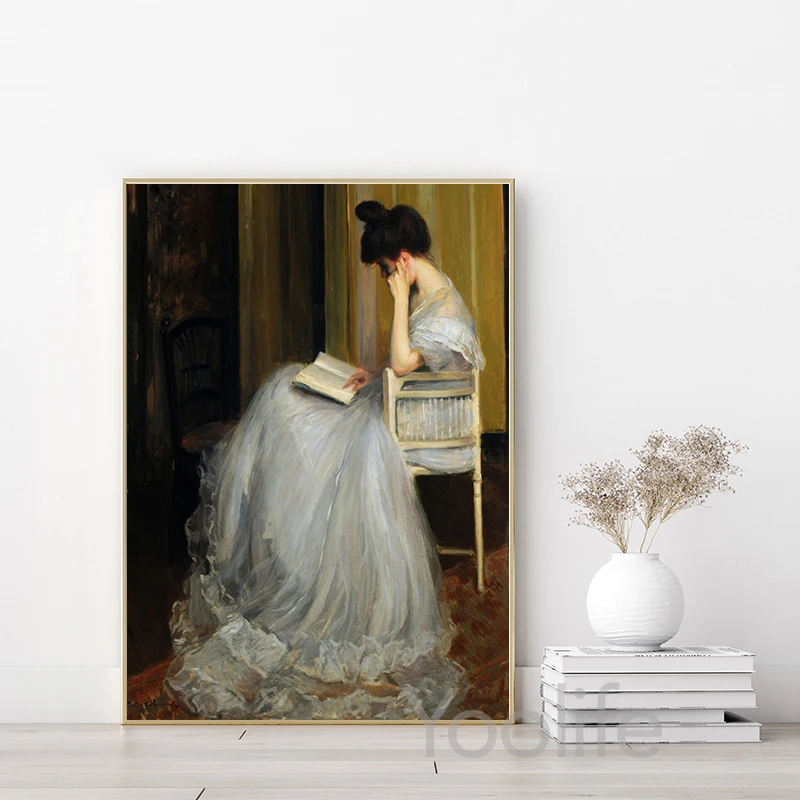 ЖЕНСКАЯ Античная картина маслом для чтения, постеры на холсте, винтажная галерея, настенные картины, женские принты для гостиной, домашний декор