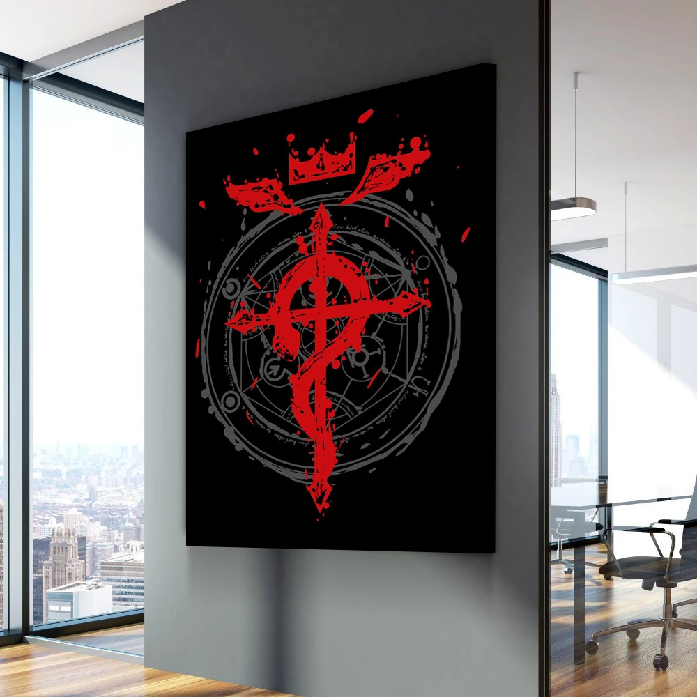 Полнометаллический плакат с логотипом алхимика из японского аниме, настенное искусство, картины на холсте, HD-принты, модульный Современный домашний декор для гостиной