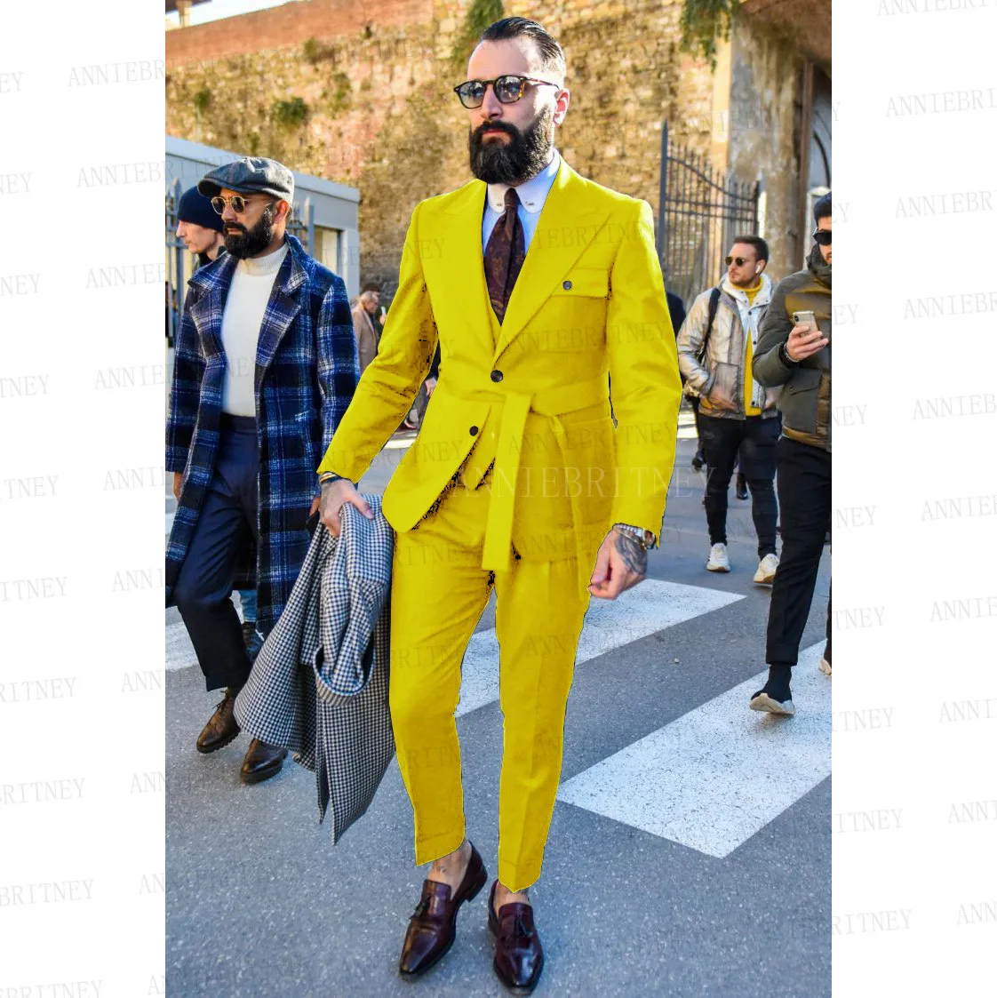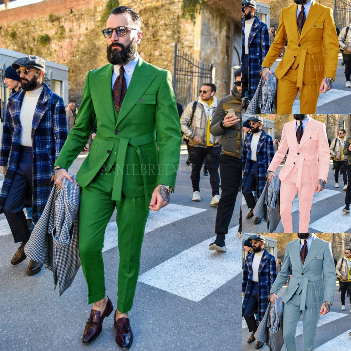 Новейший дизайн, зеленые костюмы для мужчин, приталенный модный желтый ремень для жениха, свадебное платье, смокинг, Индивидуальный Женский комплект