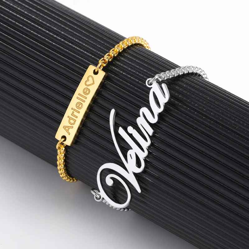 Индивидуальный индивидуальный браслет с именем ребенка, Однотонный Регулируемый браслет из нержавеющей стали золотого цвета, подарок для новорожденных девочек и мальчиков