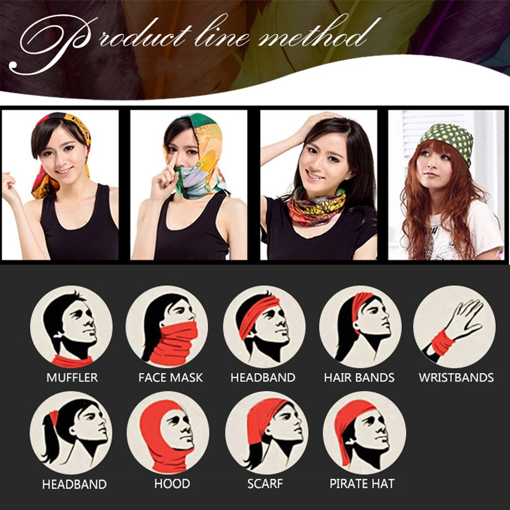 Двусторонний трубчатый дизайн, вы можете носить во многих отношенияхДышащий и Быстросохнущий материал, позволяет ткани оставаться чище для более длительного избегания роста бактерийБесшовный дизайн, сохраняет ткань эластичной и носить более комфортноМногофункциональный дизайн, может повредить УФ-светильник и держать вдали от укусов комаровФункция: шарф/повязка на голову/чехол с песком без карниза Круглая Шапка/шляпа/карман/шляпа пиратов/Браслеты/протрите грудь/юбки и т. Д.Используется для катания на лыжах/бега бандана/Прогулки/Скалолазание/теннис/Пешие прогулки/Езда на велосипеде и т. Д.
