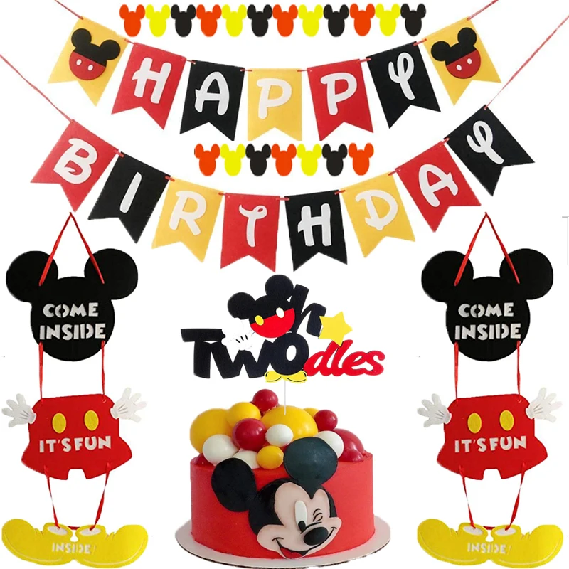 Милый дизайн:Наш с рисунком милого Микки Мауса; Вечерние поставки украшения очень подходит для того, чтобы украсить ваш чистый и милые детские вечерние, он принесет его огромным сюрпризом и много удовольствия. Все украшения очень просты в использовании и могут быть собраны всего за несколько минут.