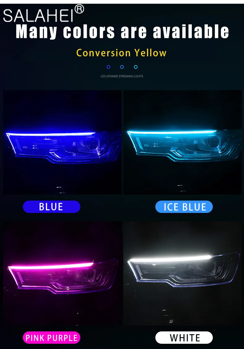 Автомобильная светодиодсветильник лента для дневных ходовых огней, гибкие светодиодные ленты для поверхностного декоративного освещения, 12 В, лампа для указателя поворота