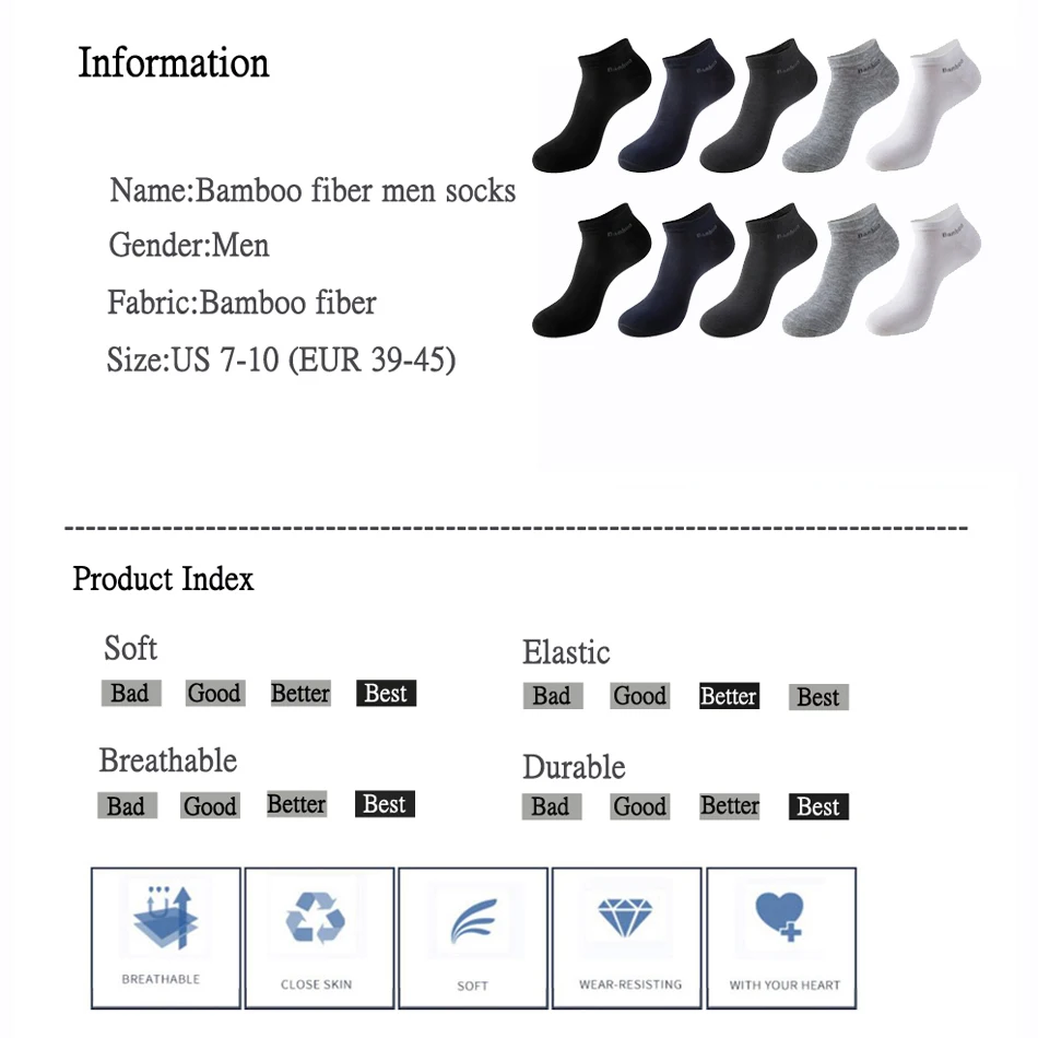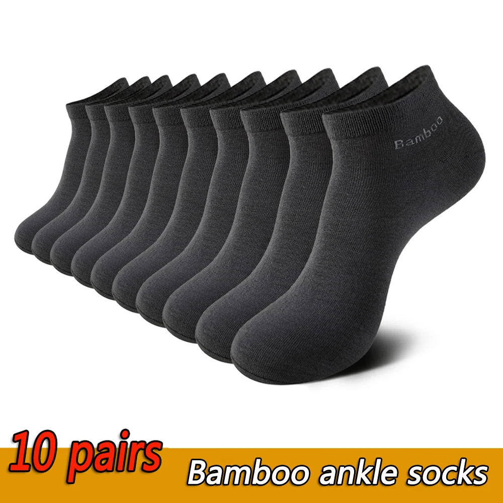 Носки компрессионные мужские, бамбуковое волокно, Короткие деловые, повседневные до щиколотки, 10 пар, дышащие мужские носки, большие размеры 38-45