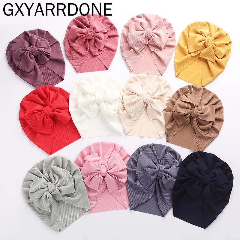 2021 головные уборы для новорожденных и малышей, однотонные ребристые шапки-тюрбан с бантиком для маленьких мальчиков и девочек, тонкие эластичные крышки в полоску