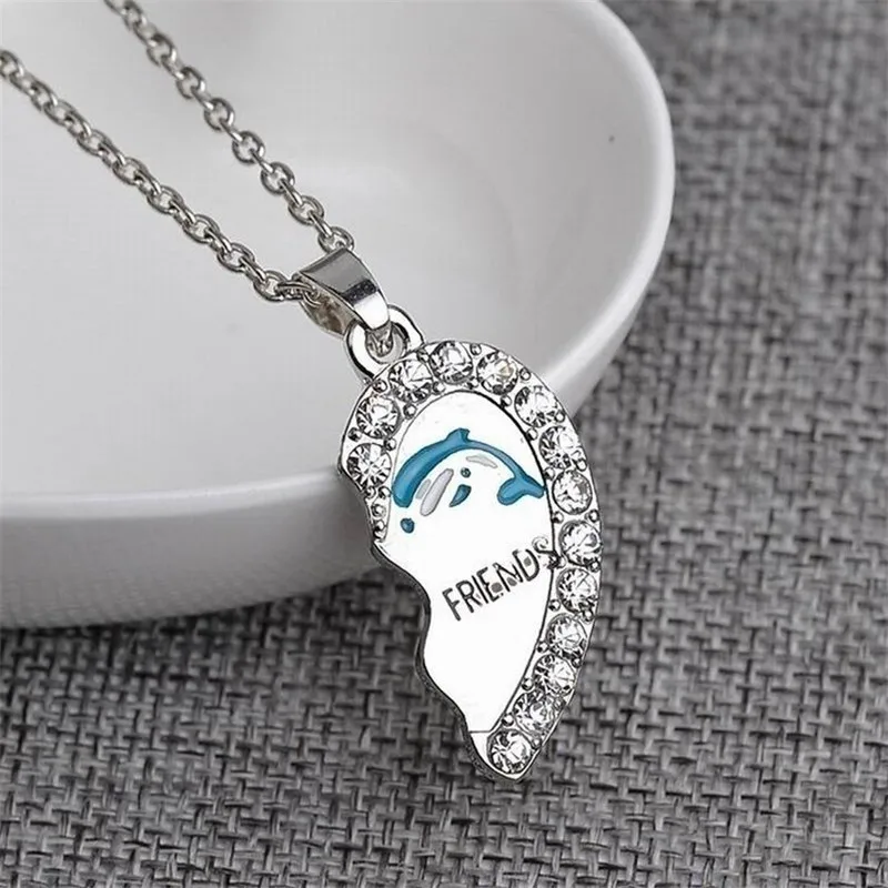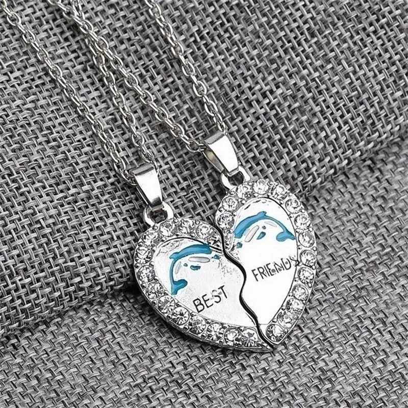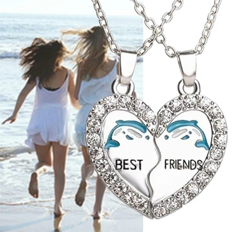 BESTONEDAY 2 шт.компл. лучшие друзья навсегда ожерелье голубой Дельфин Стразы Подвески в виде сердца для женщин ожерелье дружбы ювелирные изделия