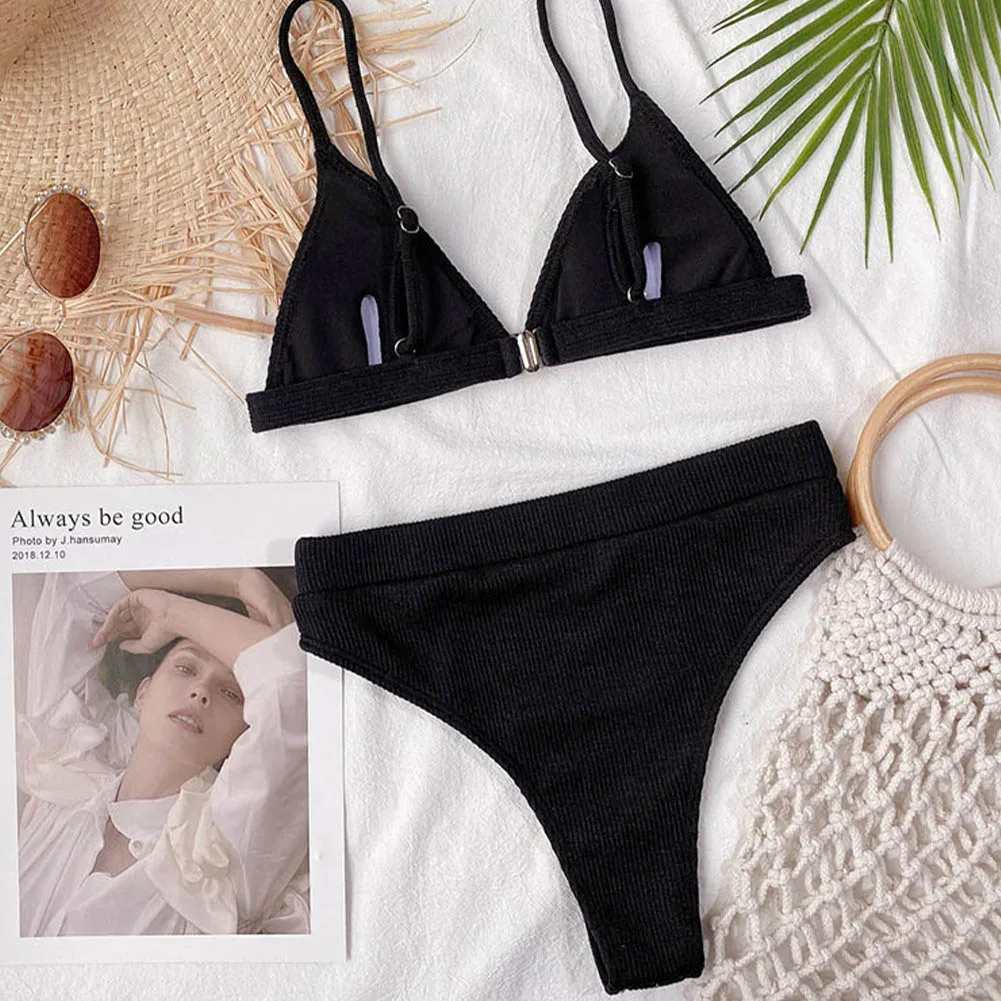 Женский купальник из двух предметов, бюстгальтер пуш-ап, бикини с глубоким V-образным вырезом и высокой талией, комплект бикини с высоким вырезом, сексуальные купальные костюмы