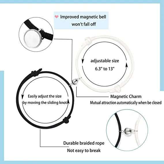 Браслет ручной работы с магнитом, регулируемый браслет на веревке, цвет черный, белый, бразильский, 2021