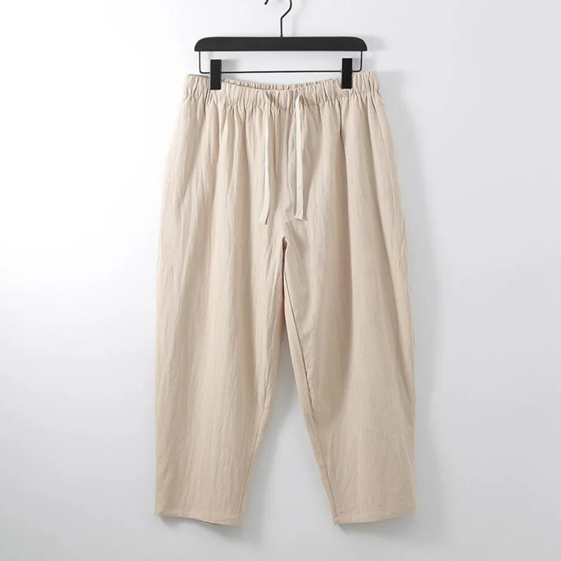 Брюки мужские льняные до щиколотки, свободные прямые штаны, одежда ...