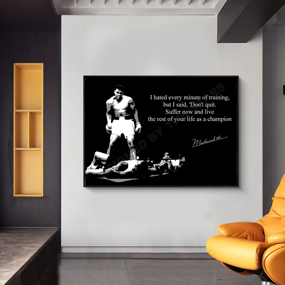 Али мотивационные картина с цитатой вдохновляющие спортивный Плакаты и декоративное настенное Искусство Рисунок в стиле знаменитостей цитаты изображение для декора комнаты