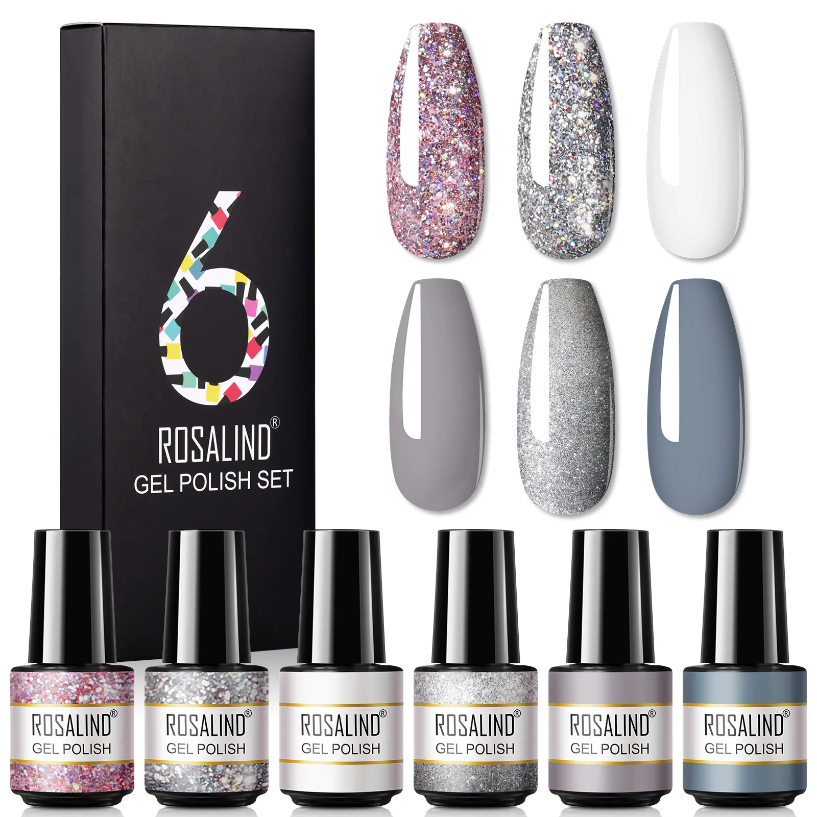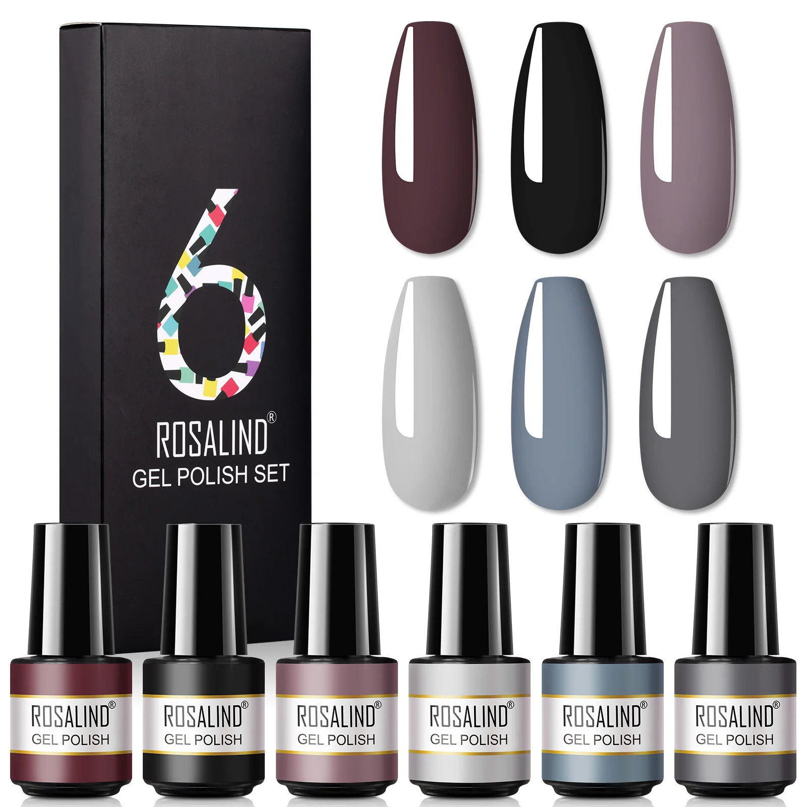 Набор гель-лаков ROSALIND, 6 шт., гибридные лаки для маникюрный гель для ногтей, Гель-лак для ногтей, базовое и верхнее покрытие, полуперманентный дизайн ногтей