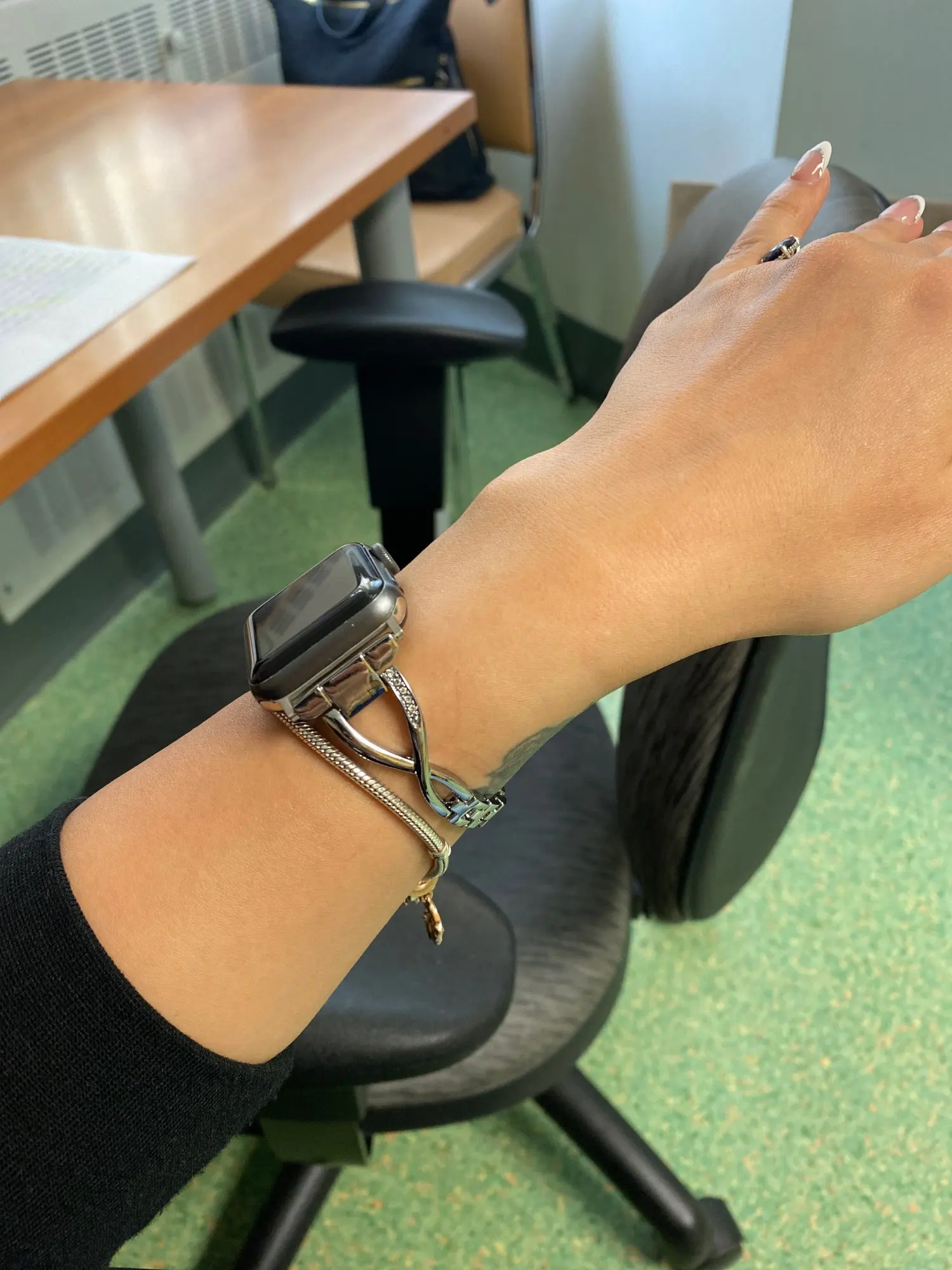Особенности:1. Металлические Классические полосы премиум класса из нержавеющей стали идеально подходят для Apple Watch, все модели 38 мм/42 мм, серия 1, серия 2, серия 32. Идеальная технология полировки, делает поверхность более гладкой и сверкающей. Все кристаллы инкрустированы вручную под микроскопом.3. Элегантный тонкий ремешок в комплекте стразы. Просто достаточно шикарно, чтобы сделать его очень модным. Ваш браслет iwatch выглядит как ювелирное изделие. Хороший вариант носить apple watch с вашими платьями. Приносит вам много комплиментов4. Устойчивость к коррозии. Материал: изготовлен из отборного премиум-класса металла из нержавеющей стали 316L с роскошью, благородством, элегантностью и долговечностью. Уникальный художественный и повседневный дизайн делает ремешок более красивым, ярким, роскошным, великолепным, изысканным и передовым. Вы будете выделяться из толпы.5. Легко изменить размер: Просто снимите складную застежку рукой, чтобы изменить размер ремешка. Инструмент не нужен