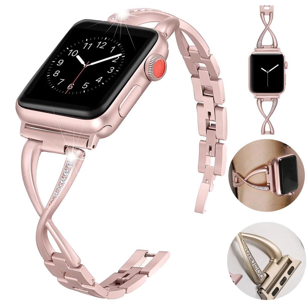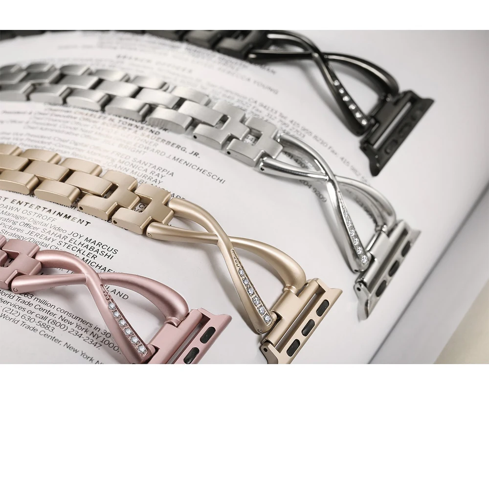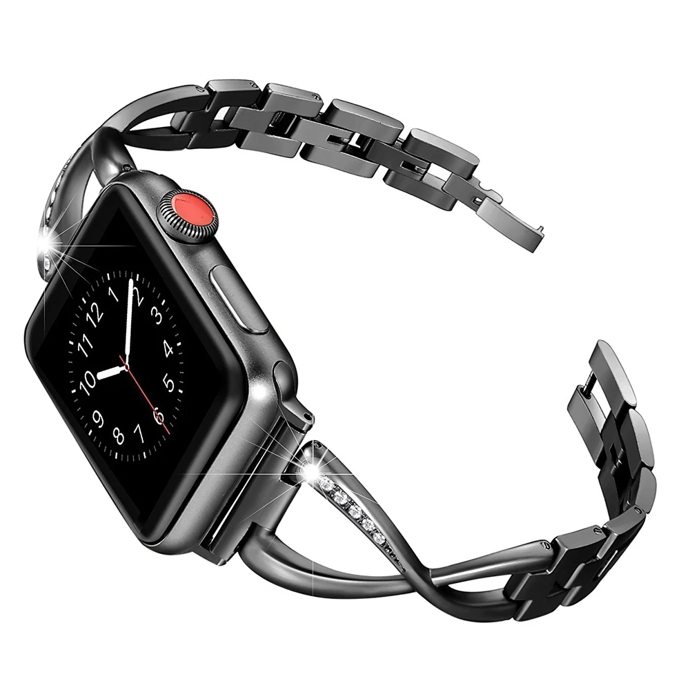 Ремешок металлический для apple watch band 44 мм40 мм42 мм38 мм, браслет из нержавеющей стали с бриллиантами для женщин, iwatch series 4 3 5 se 6