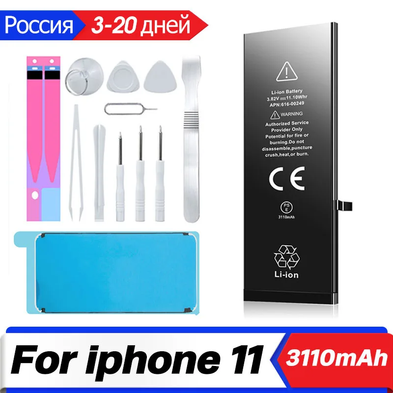 Фотоаккумулятор для iPhone 11, iPhone 11 с бесплатным набором инструментов для ремонта, 3110 мАч, Оригинальная батарея большой емкости, замена 2021