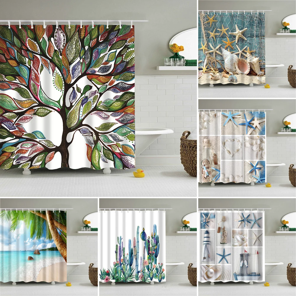 18-типов моделей Водонепроницаемый пляжные лес душевая Шторы полиэстер Ванна Шторы s 180*180200 см Ванная комната украшения с Крючки