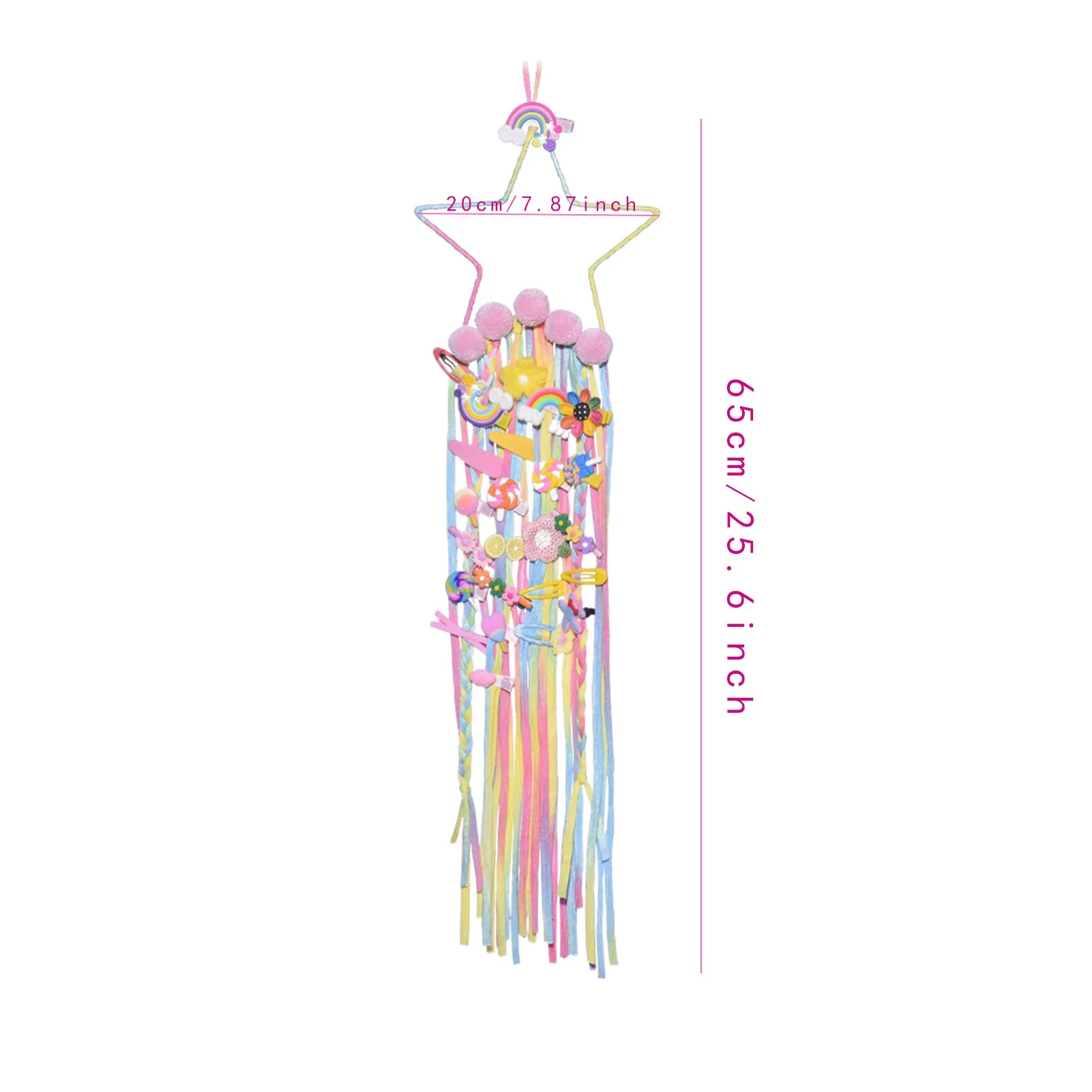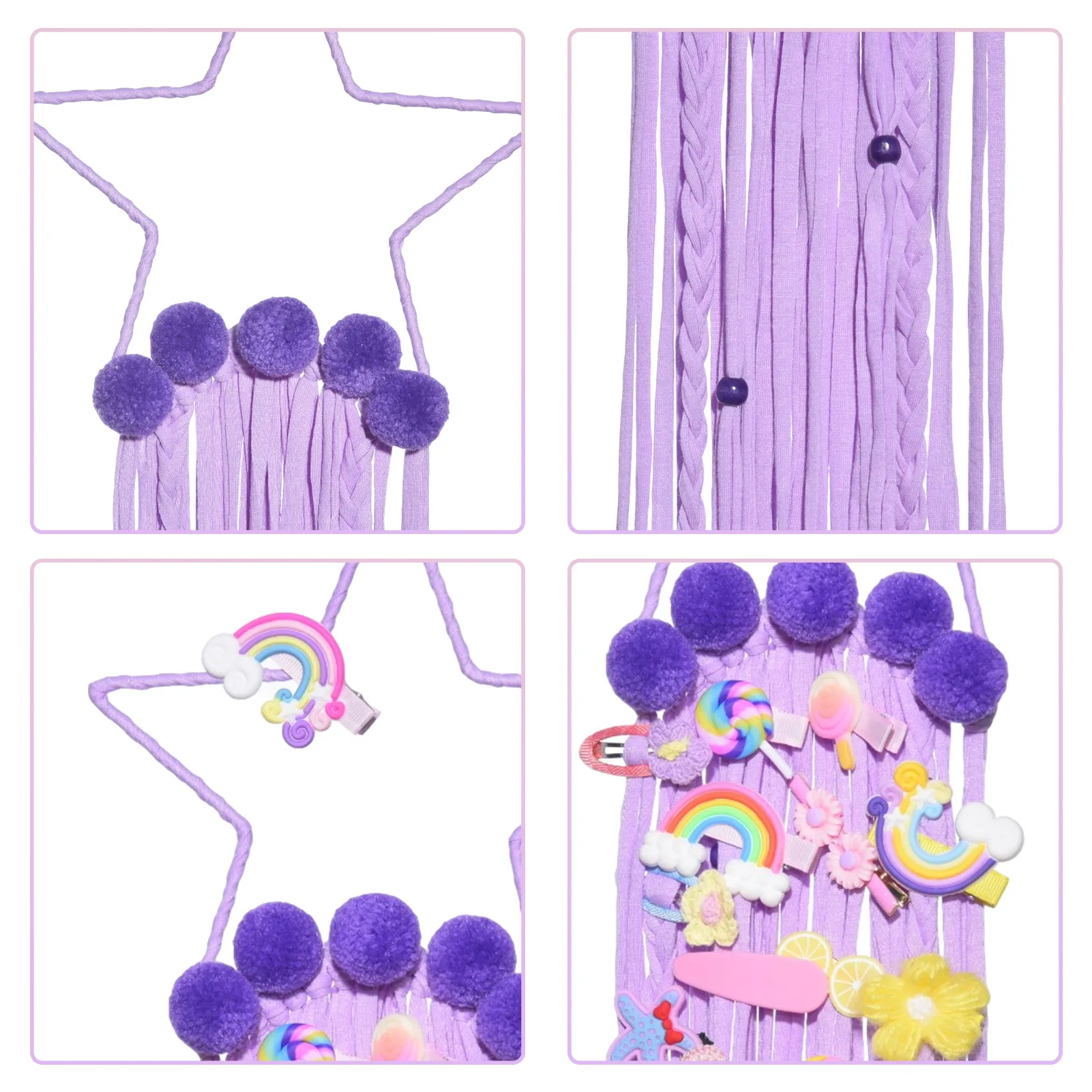 Особенности:1. Интересный дизайн: милая пятиконечная звезда, пушистый маленький шарик, красочная веревка, хороший выбор для сезонного и праздничного украшения или детской комнаты.2. Хранение шпильки: вы можете закрепить шпильку для маленькой девочки на кисточкой из радужных ювелирных изделий и получить потрясающий визуальный эффект при одновременном хранении. (Без шпильки).3. Ручная вязка, Ловец снов, ювелирные изделия: доступны различные цвета, розовый, фиолетовый и цвет, идеальный зажим с бантом для маленьких девочек, идеальное украшение для детских комнат.4. Размер изделия: около 65*20 см, цветные украшения со звездами, яркие цвета, очень подходят для украшения комнат для девочек и создания расслабляющего ощущения в любой комнате.5. Широкое Использование: подходит для детских комнат, гостиных, спален, общежитий, квартиры, галерей и фоновых декораций.Спецификация:Название: настенный Ловец сновМатериал: железное кольцо + веревкаРазмер: около 65*20 см/25,6*7,87 дюймаВес: около 110 гУпаковочный лист:Пятиконечная звезда украшение с кисточкой * 1 (без шпильки)
