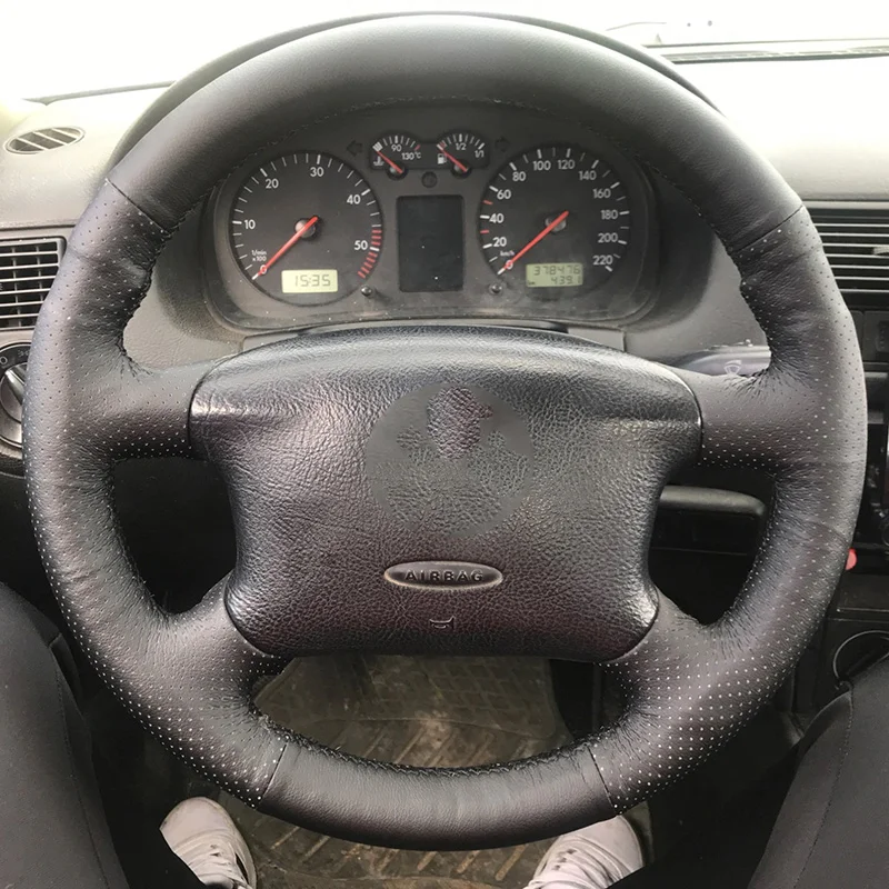 Кожаная оплетка для руля, для Volkswagen Passat B5, Golf 4, Skoda Octavia чехол рулевого колеса автомобиля-1999