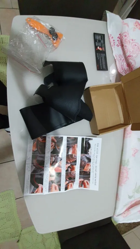 DIY чехол рулевого колеса автомобиля Черный внешняя часть изготовле...