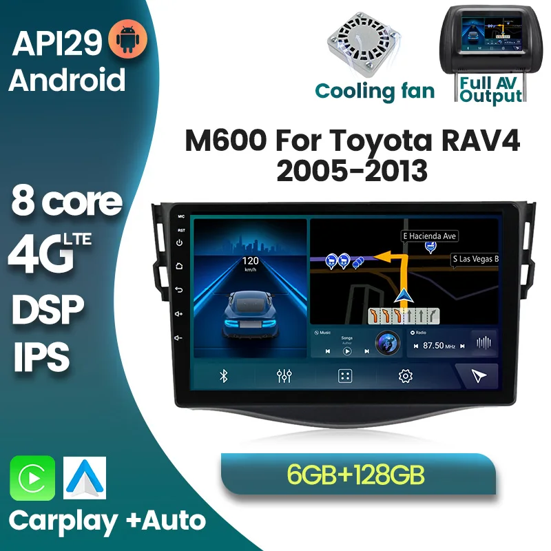 Автомобильный радиоприемник 4G LTE Android 10, мультимедийная навигация для Toyota RAV4 2005-2013, автомобильная аудиосистема с поддержкой SWC Carplay, IPS-экран