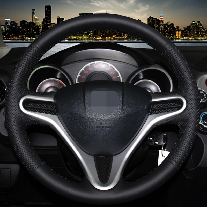 Чехол рулевого колеса автомобиля черная искусственная кожа для Hond...