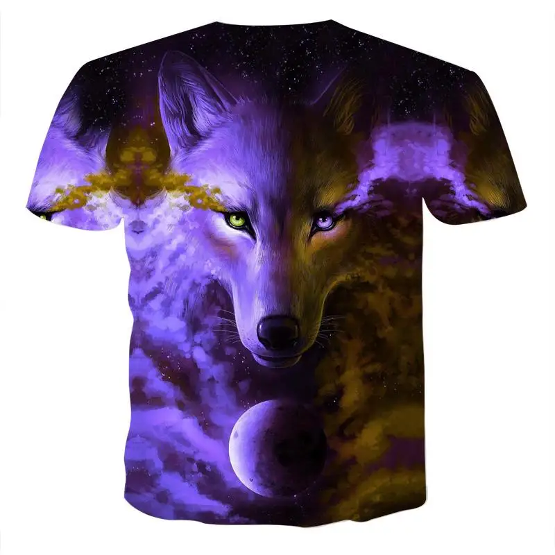 Мужская футболка с коротким рукавом, с 3D-принтом волка, лето 2020