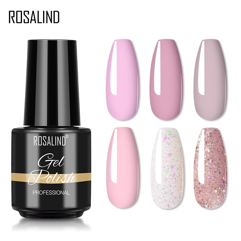 Гель-лак для ногтей ROSALIND, 6 шт., набор для маникюра 7 мл, гибридный лак, Полуперманентная необходимость, УФ светодиодный ОД, базовое и верхнее покрытие для ногтей