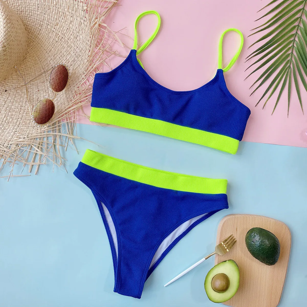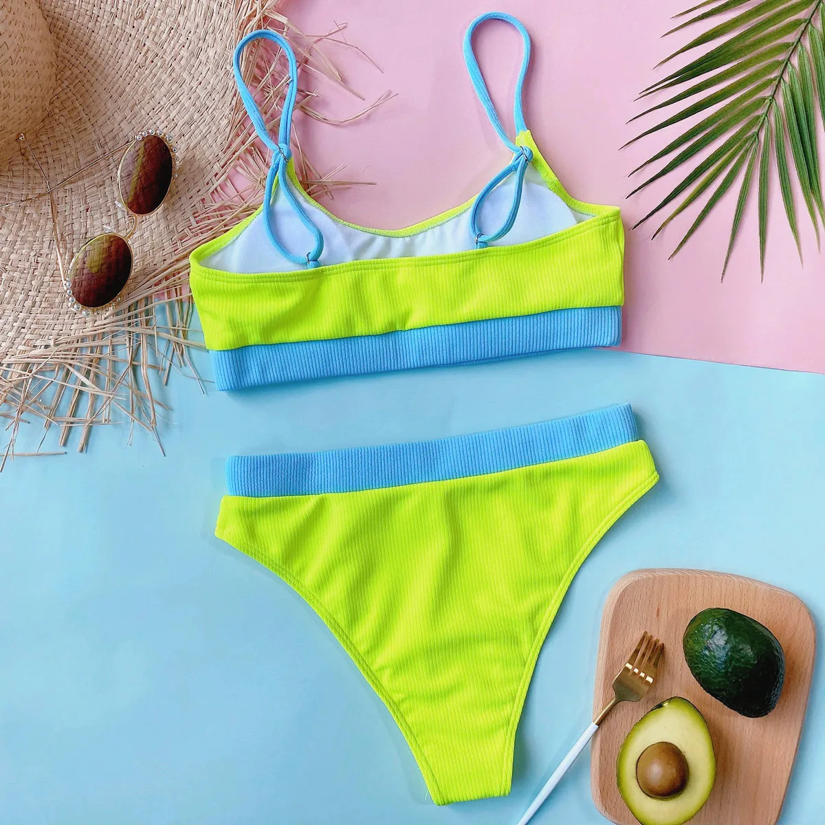 AIUJXK неоновый бандо Бикини Для женщин с высокой талией ванный комплект 2021 новый летний комплект из 2 предметов, купальник, пляжная одежда, купальник, бикини, женский