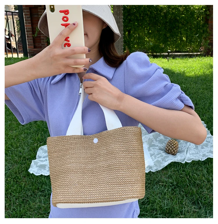 Пляжные сумки, женская Соломенная Корзина, большая сумка-тоут, модные женские сумки на плечо, летние соломенные плетеные большие сумки, новинка 2021, дорожные сумки
