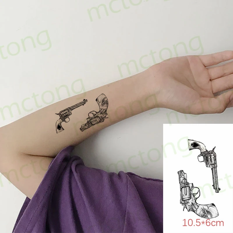 Водостойкие временные тату-наклейки в стиле ретро, розовые револьверные пики, пистолет для боди-арта, макияж, флэш-тату для мужчин, женщин и мужчин