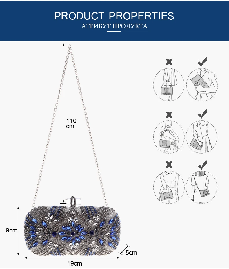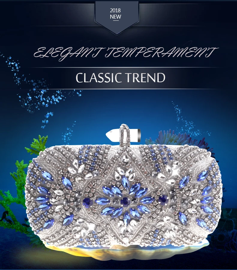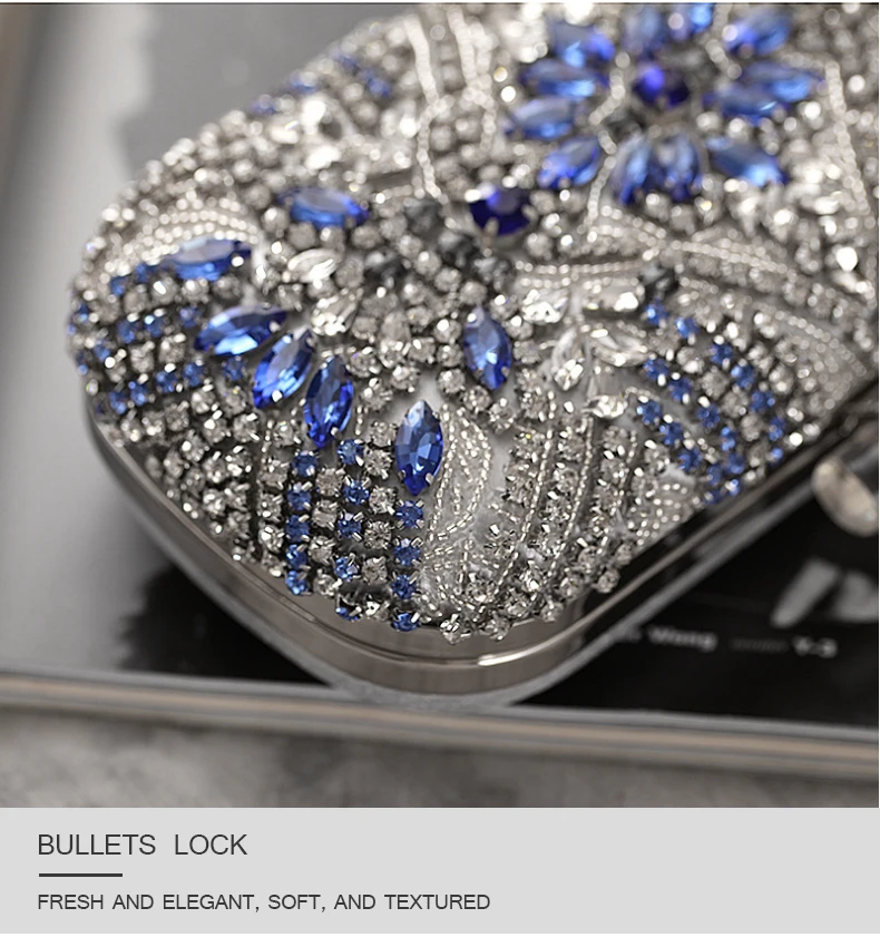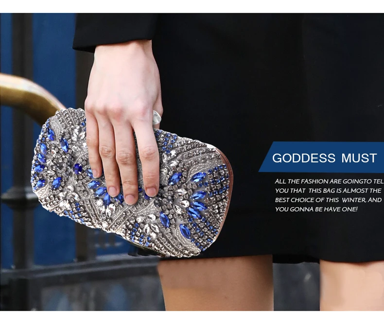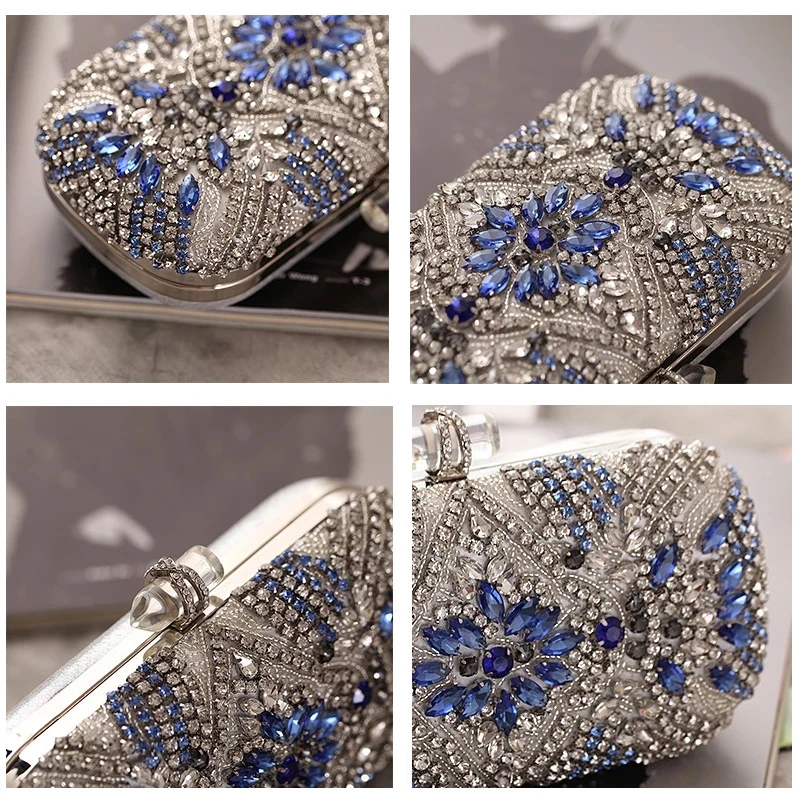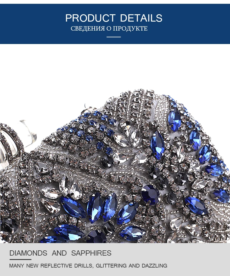 Женская сумка-клатч вечерние Роскошные синяя вечерняя сумочка для свадьбы кошелек с украшением в виде кристаллов на цепочке сумка через плечо Стразы женский клатч