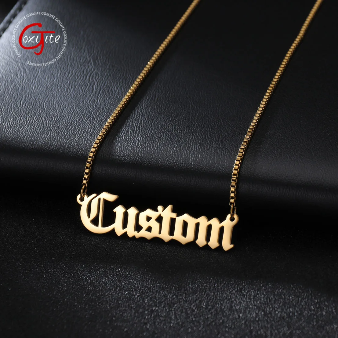 Goxijite индивидуальное модное ожерелье с именем из нержавеющей стали, персонализированное золотое ожерелье-чокер, подвеска с именной табличкой, Подарочная цепочка