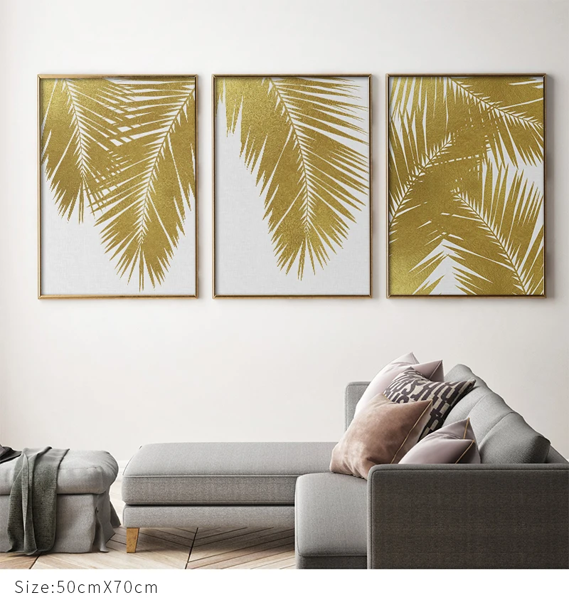 Nordic стены искусства Золотой пальмовых листьев растений холст картина, печатный плакат ботанический скандинавский декоративная картина Современный домашний декор
