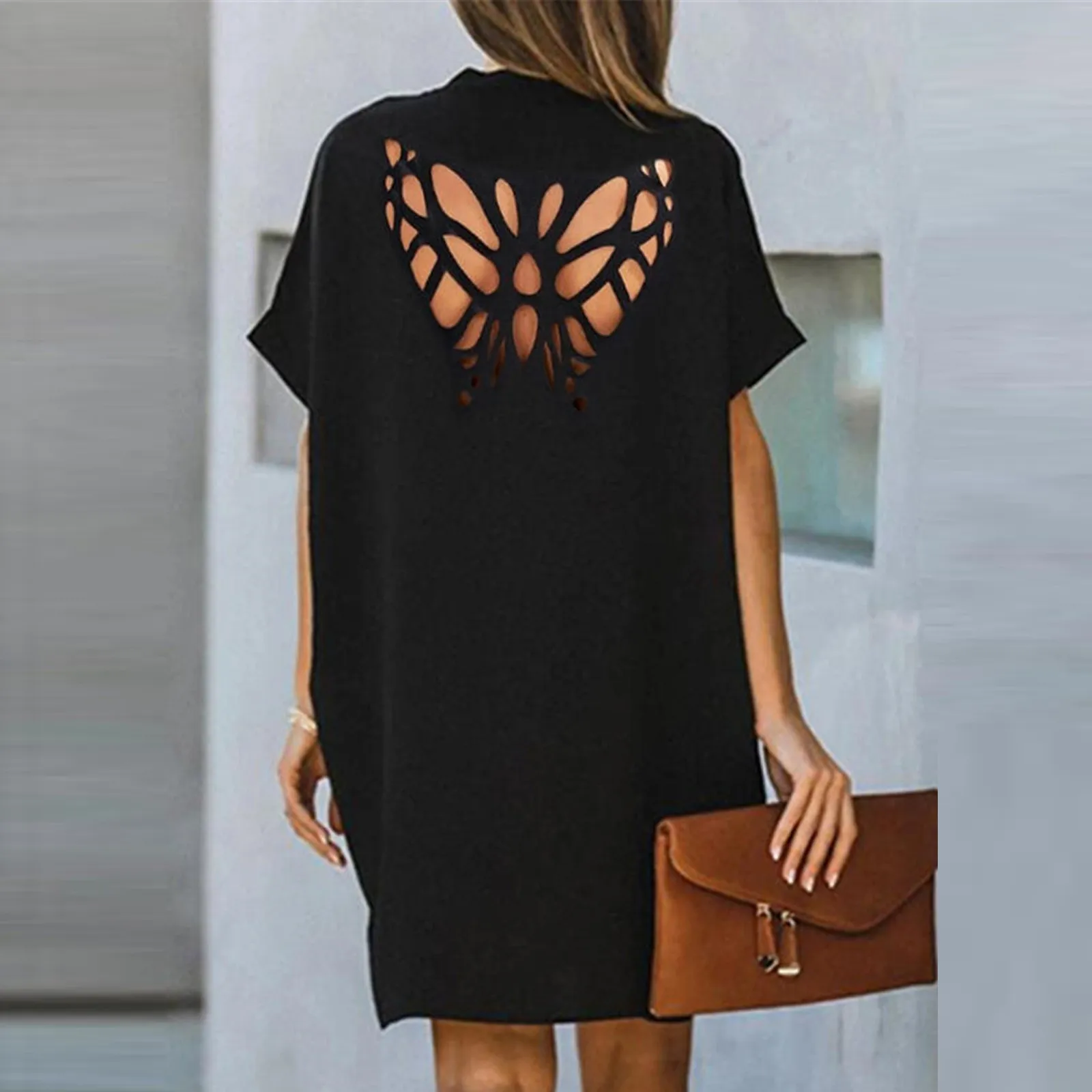 Платье женское однотонное с вырезами и бабочками, повседневный свободный сарафан черного цвета с V-образным вырезом, лето 2021