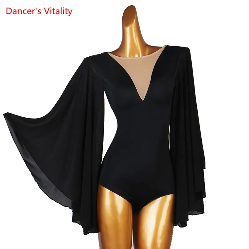 Топ женский для латиноамериканских танцев, элегантный боди с длинны...