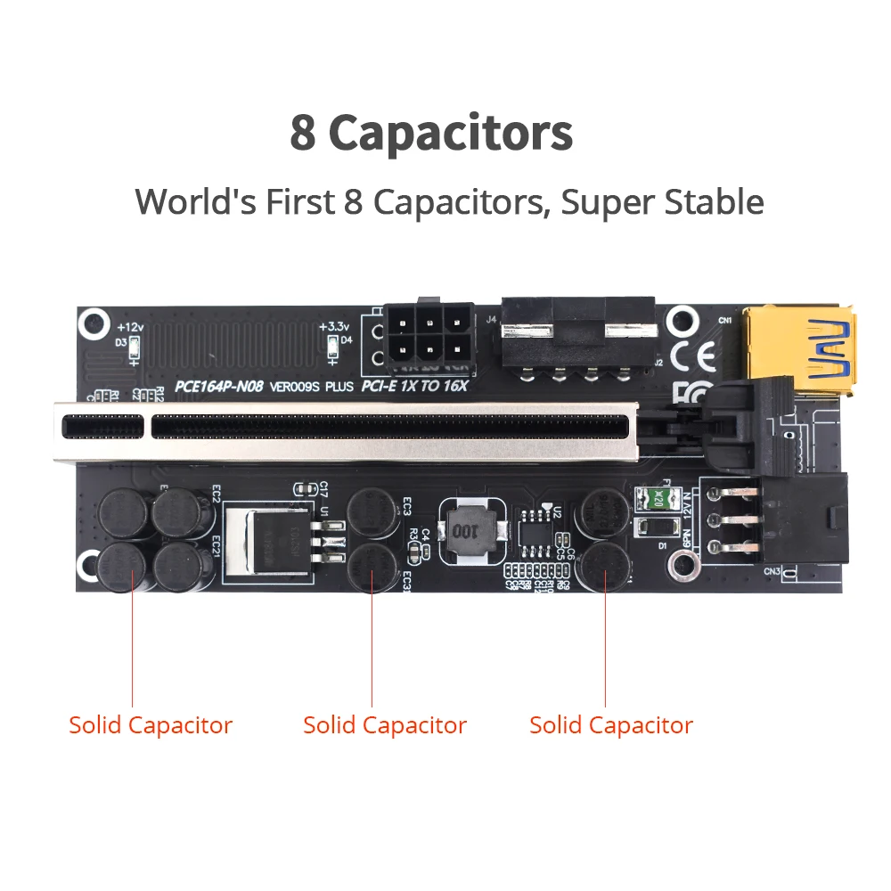 100 шт., Райзер-карта VER009S Plus PCI-E PCIE, 8 конденсаторов, Ver...