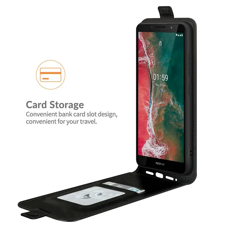 Оригинальный Роскошный кожаный чехол-бумажник с откидной крышкой Материал> искусственная кожа + силикон Цвет> черный, коричневый, красный, белый Совместимые модели> Для Nokia C1 Plus/5,45"